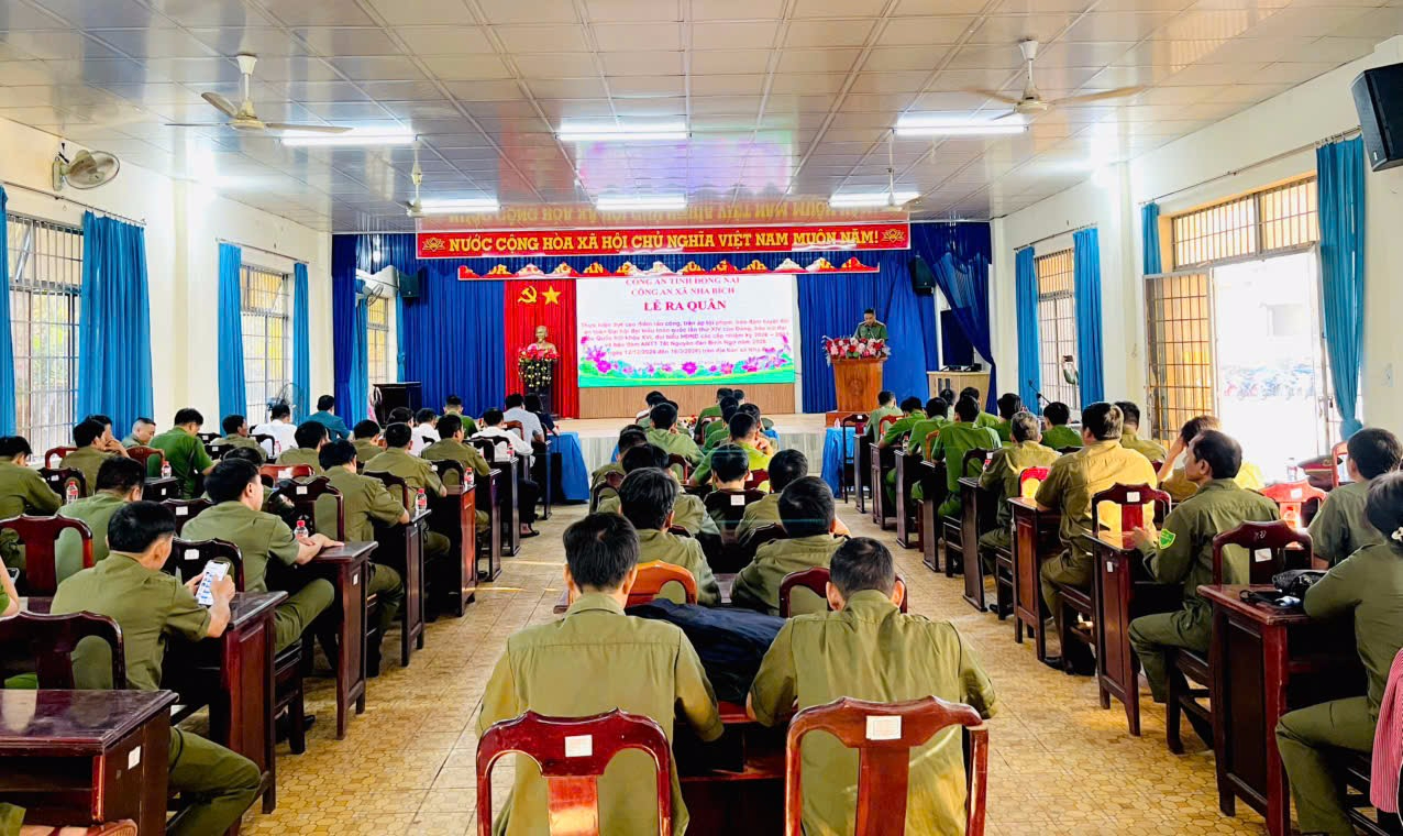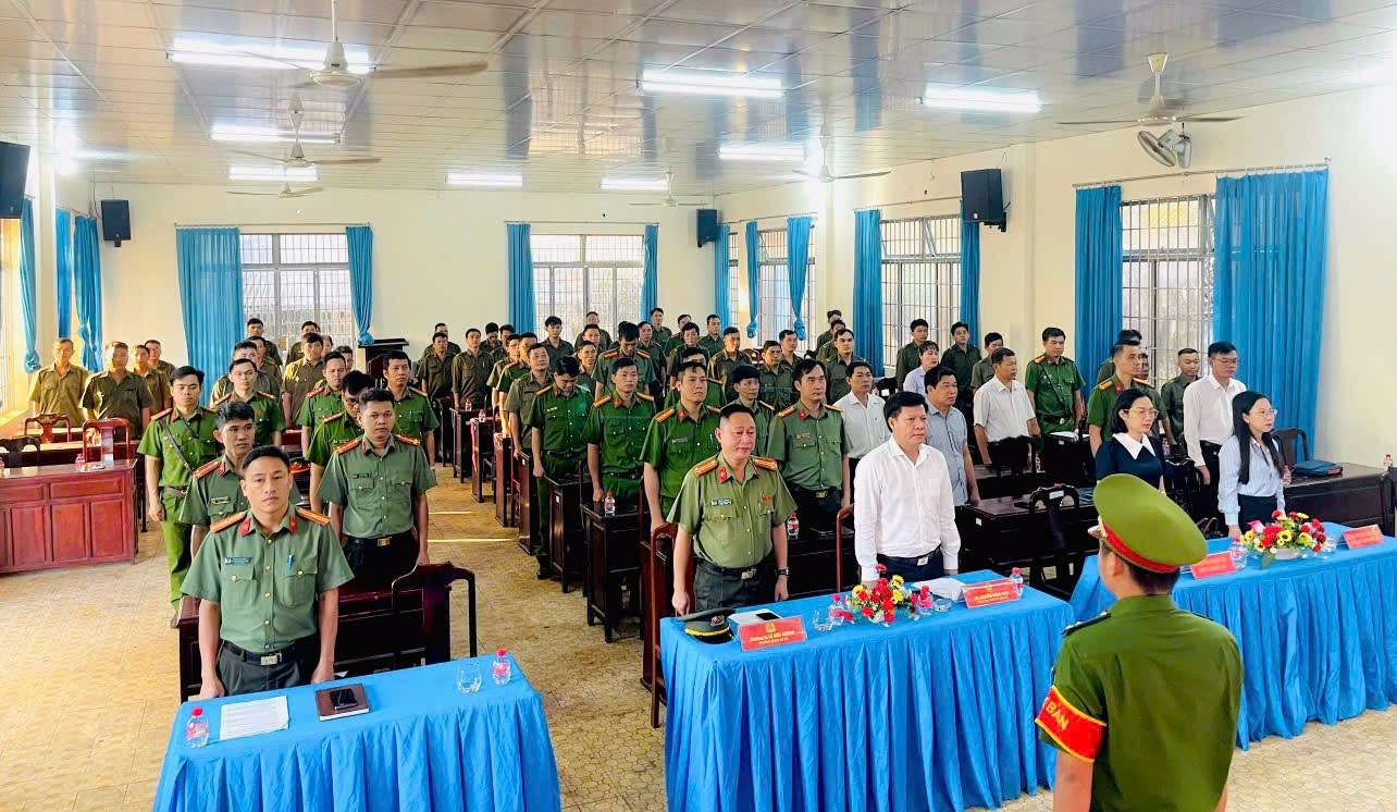 Buổi lễ ra quân đã tạo khí thế thi đua sôi nổi, thể hiện quyết tâm cao của cán bộ, chiến sĩ Công an xã Nha Bích. Ảnh: H.Trang