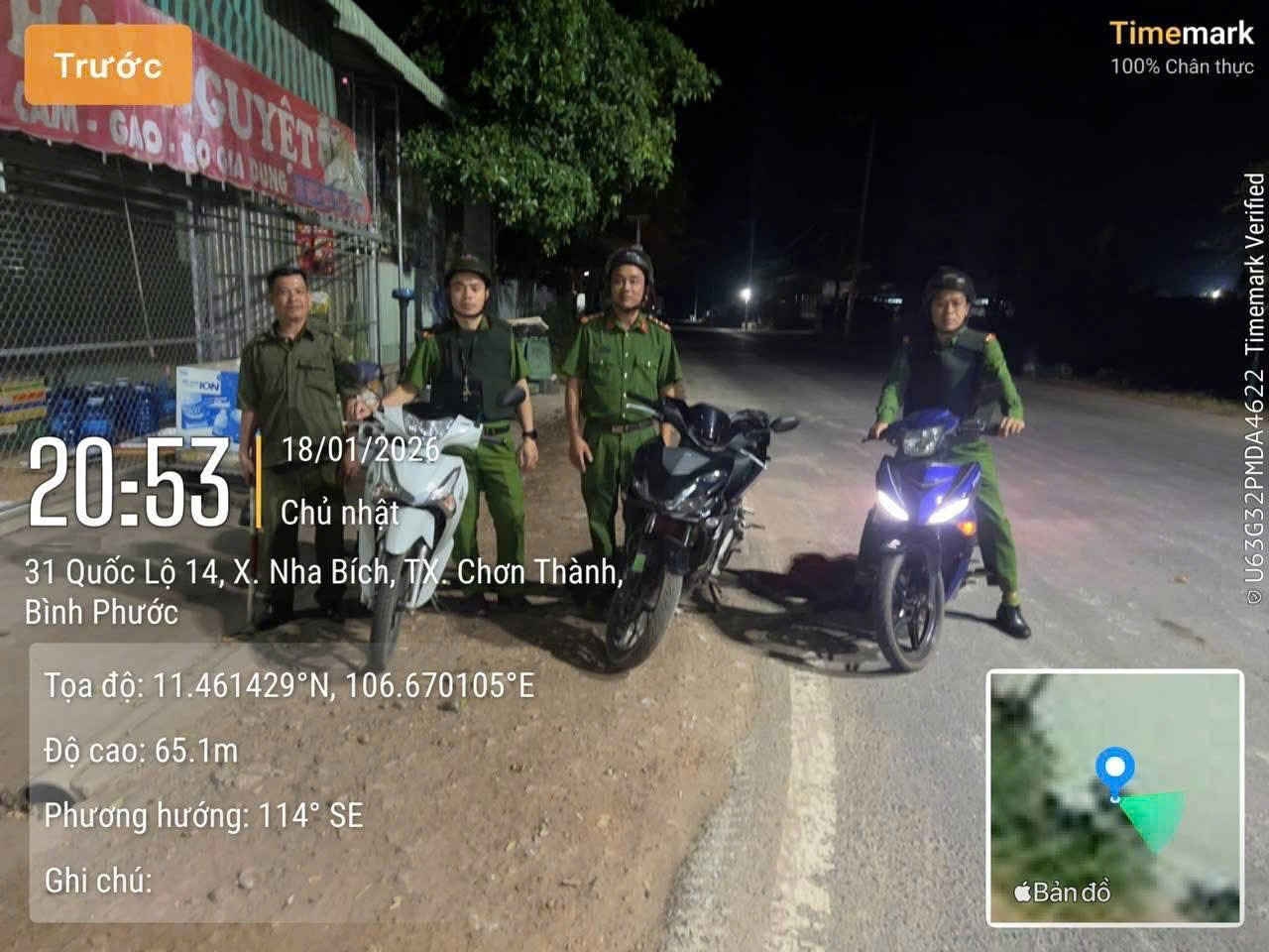 Thực hiện chỉ đạo của Giám đốc Công an tỉnh Đồng Nai, sự lãnh đạo, chỉ đạo của Đảng ủy, UBND xã Nha Bích và Kế hoạch cao điểm bảo đảm an ninh, trật tự phục vụ Đại hội Đại biểu toàn quốc lần thứ XIV của Đảng Cộng sảnViệt Nam, tối ngày 18/01/2026, Công an xã Nha Bích tổ chức lực lượng ra quân tuần tra, kiểm soát bảo đảm an ninh, trật tự trên địa bàn xã.