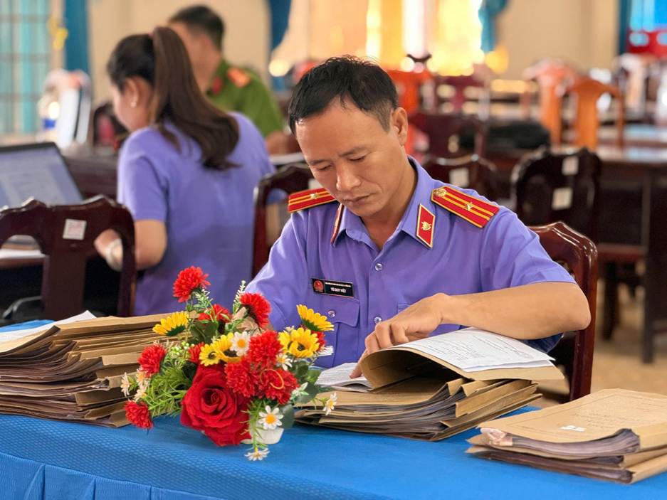 Kiểm sát viên - Viện Kiểm sát nhân dân khu vực 10 - Đồng Nai đang tiến hành kiểm tra hồ sơ lưu trữ về thi hành án hình sự tại cộng đồng