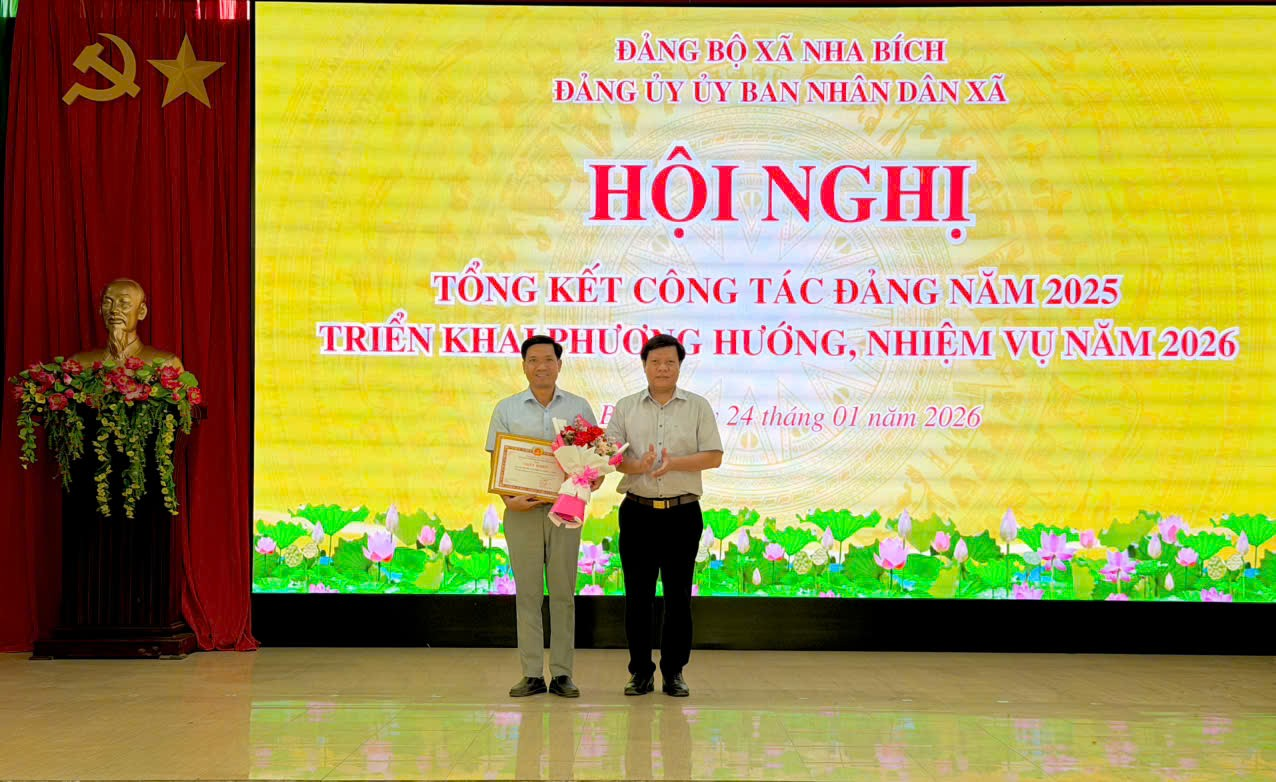 Sáng ngày 24/01/2026, tại Hội trường UBND xã Nha Bích, Đảng ủy UBND xã tổ chức Hội nghị tổng kết công tác Đảng năm 2025, triển khai phương hướng, nhiệm vụ năm 2026.