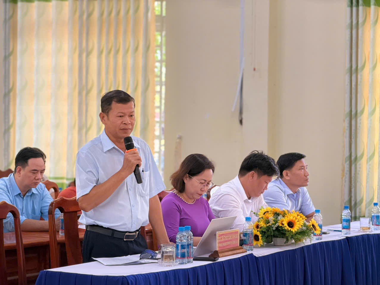 Đồng chí Võ Quốc Hân – Bí thư Chi bộ Trung tâm DVTH xã phát biểu tại Hội nghị