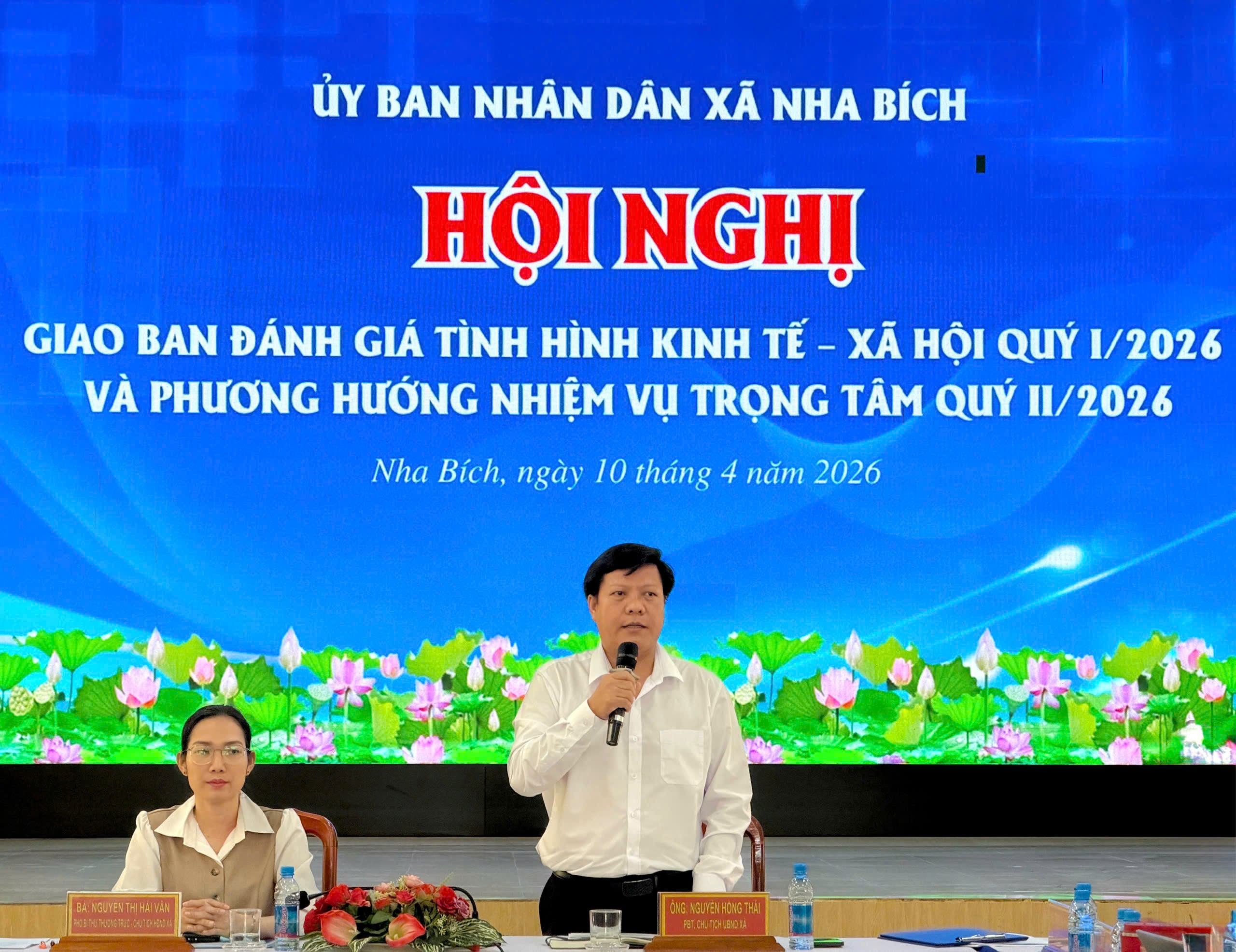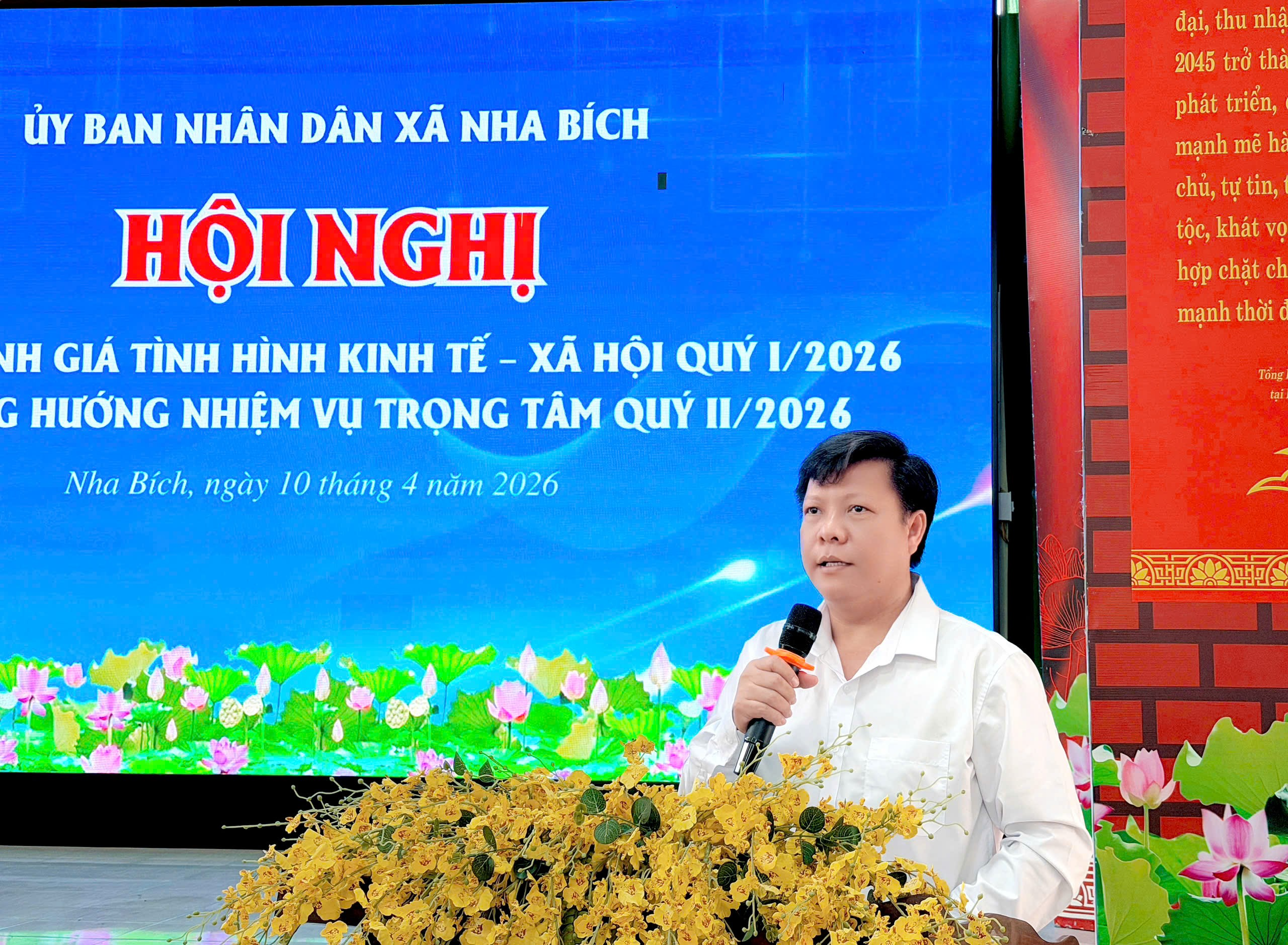 Sáng ngày 10/4/2026, UBND xã Nha Bích đã tổ chức Hội nghị đánh giá tình hình thực hiện nhiệm vụ phát triển kinh tế – xã hội, quốc phòng – an ninh quý I và triển khai phương hướng, nhiệm vụ quý II năm 2026.
