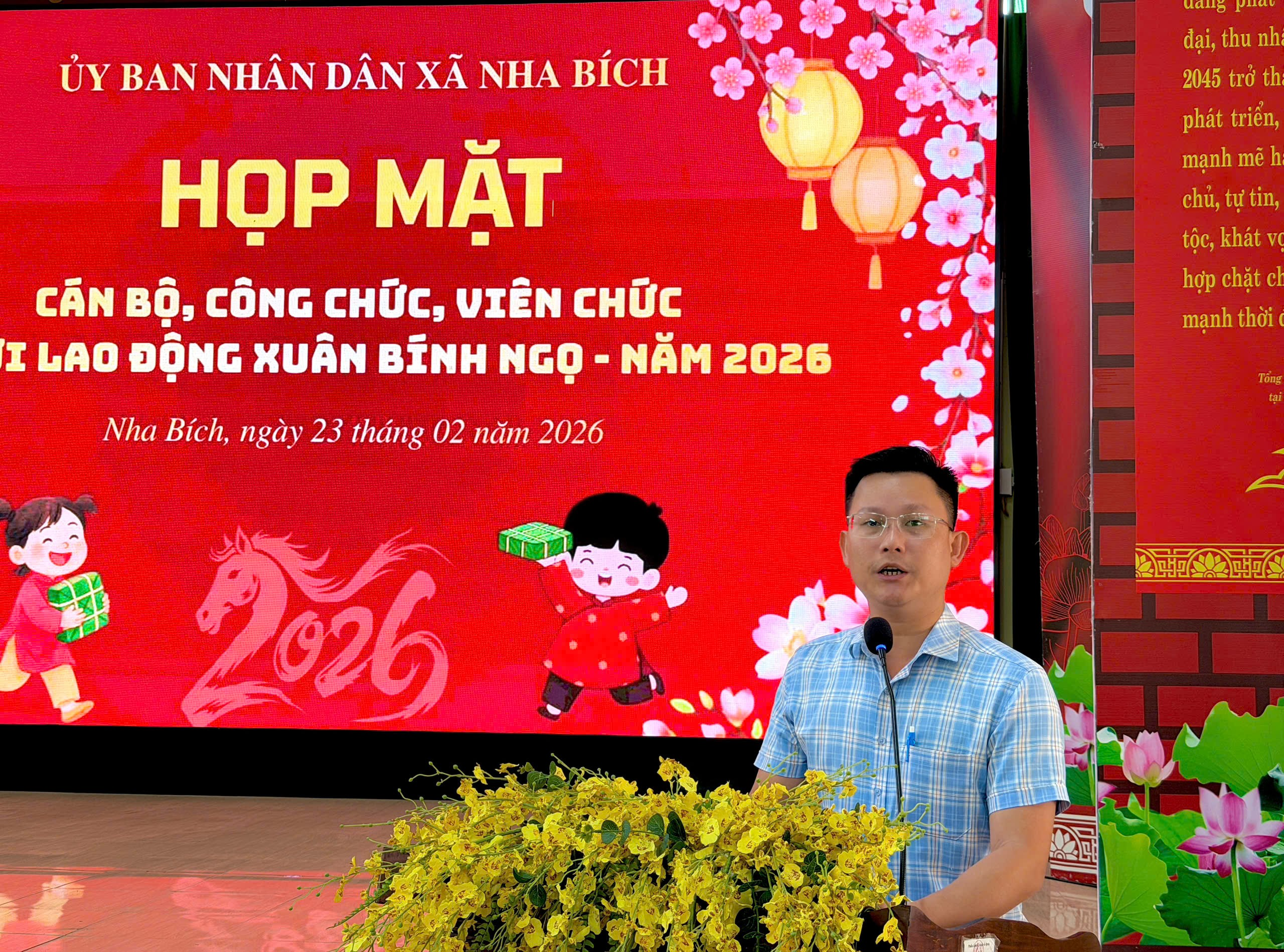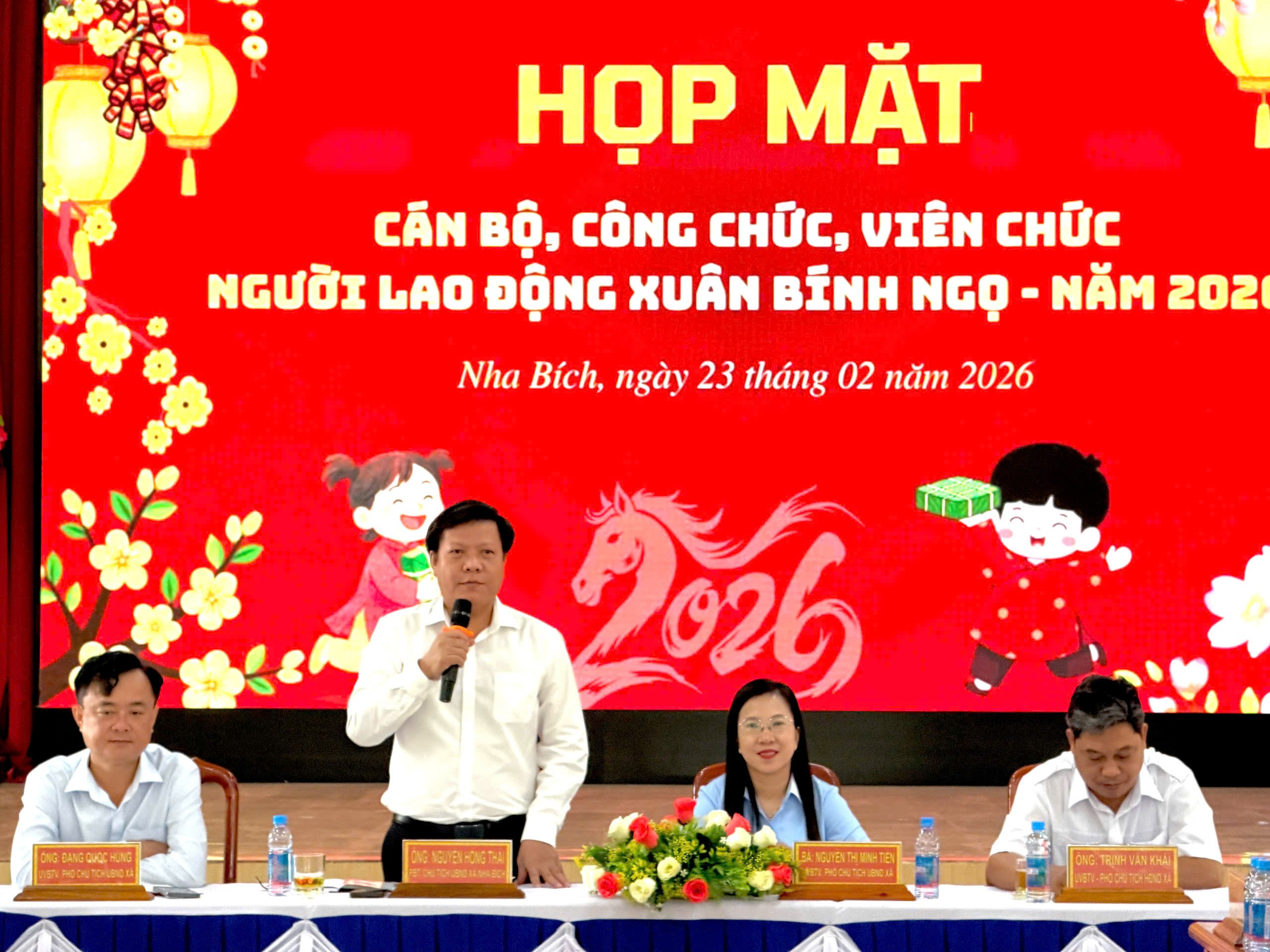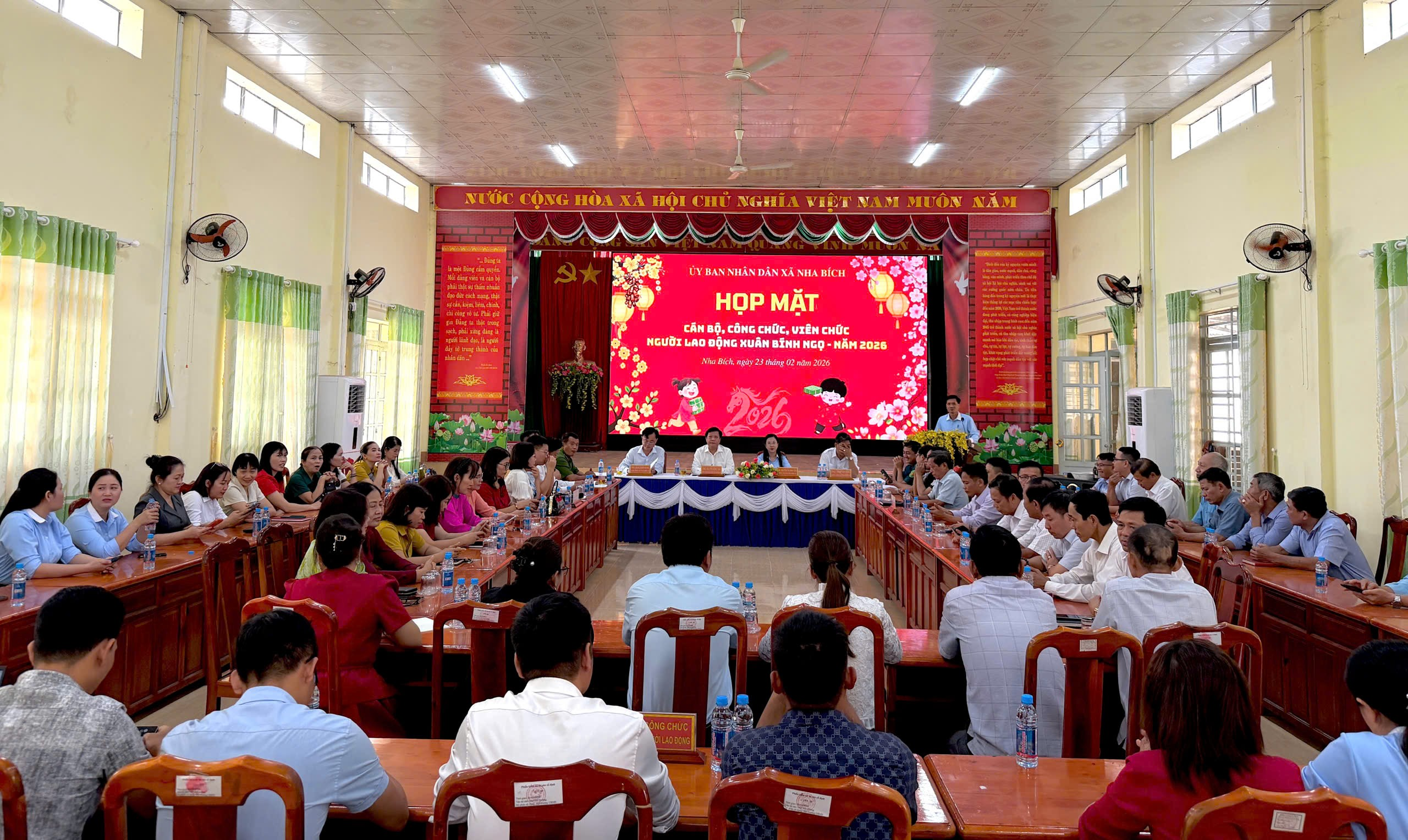 Chương trình họp mặt đầu Xuân không chỉ là dịp gặp gỡ, động viên tinh thần đầu năm mà còn thể hiện quyết tâm chính trị cao của tập thể UBND xã Nha Bích trong việc triển khai nhiệm vụ năm 2026 với khí thế mới, quyết tâm mới và hành động cụ thể, thiết thực ngay từ những ngày đầu, tháng đầu của năm.