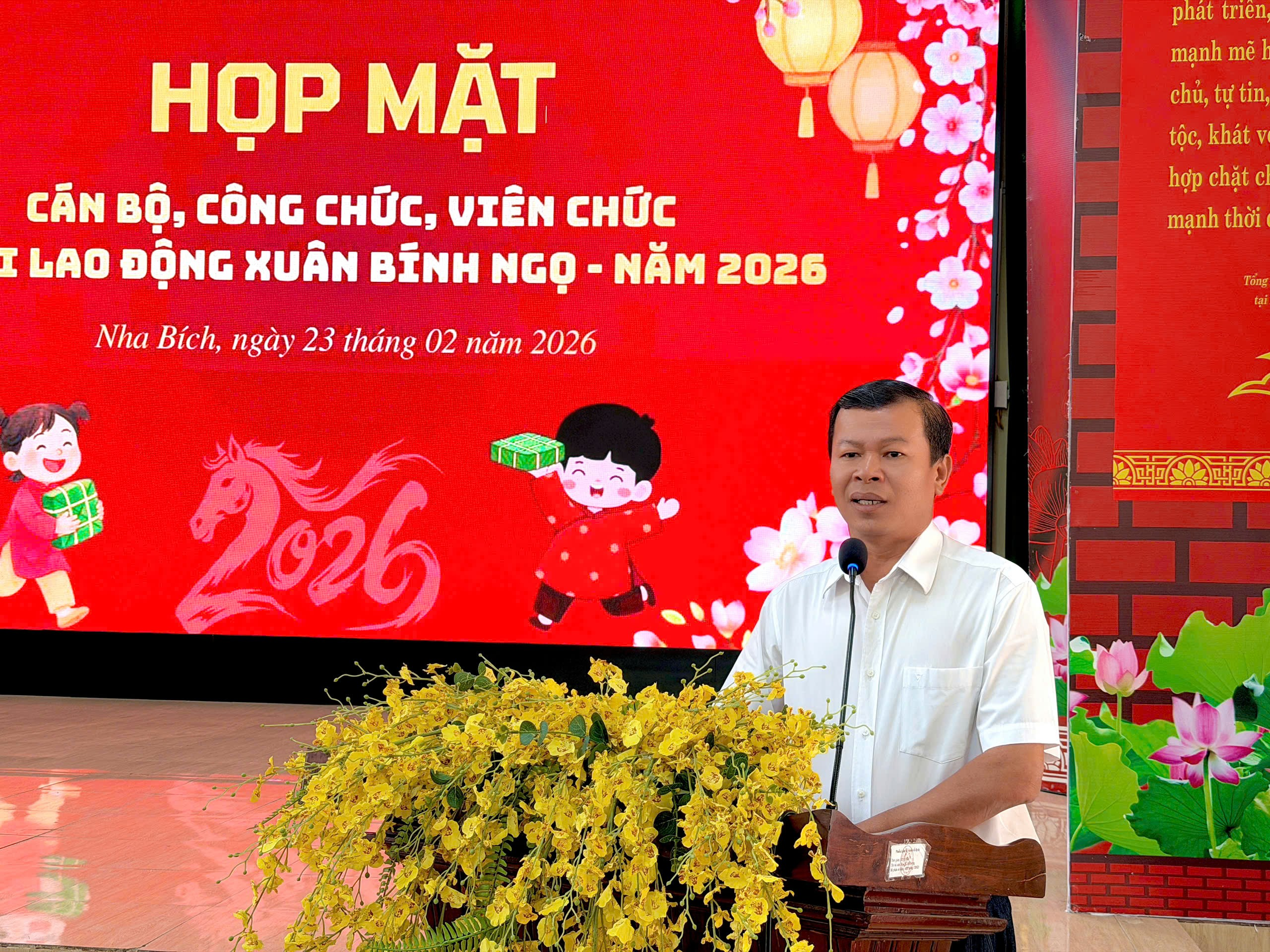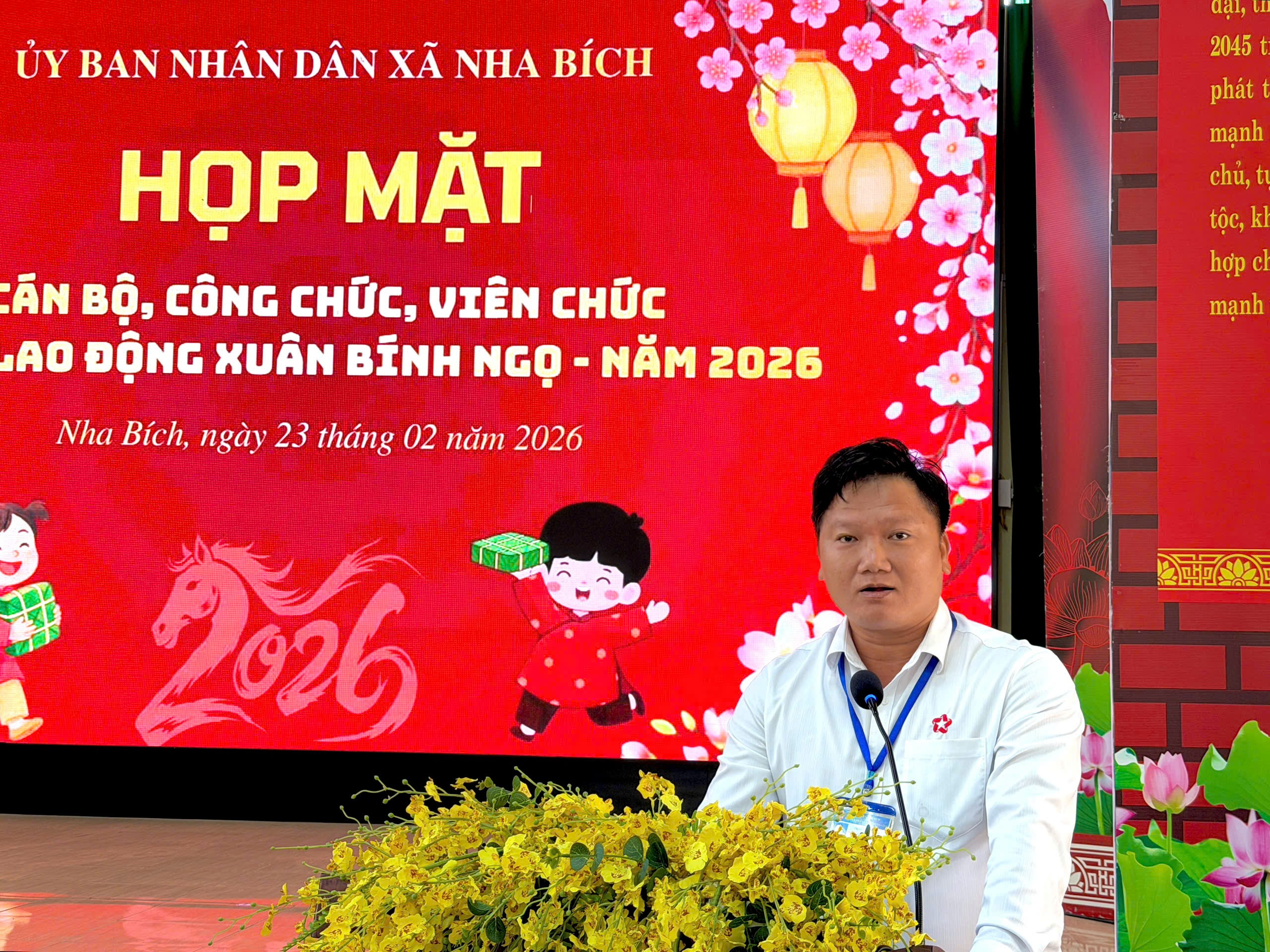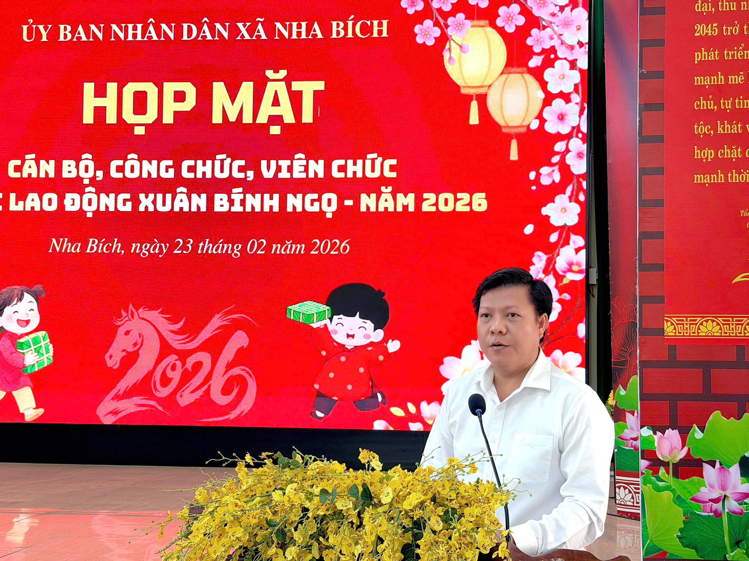 Chương trình họp mặt đầu Xuân không chỉ là dịp gặp gỡ, động viên tinh thần đầu năm mà còn thể hiện quyết tâm chính trị cao của tập thể UBND xã Nha Bích trong việc triển khai nhiệm vụ năm 2026 với khí thế mới, quyết tâm mới và hành động cụ thể, thiết thực ngay từ những ngày đầu, tháng đầu của năm.