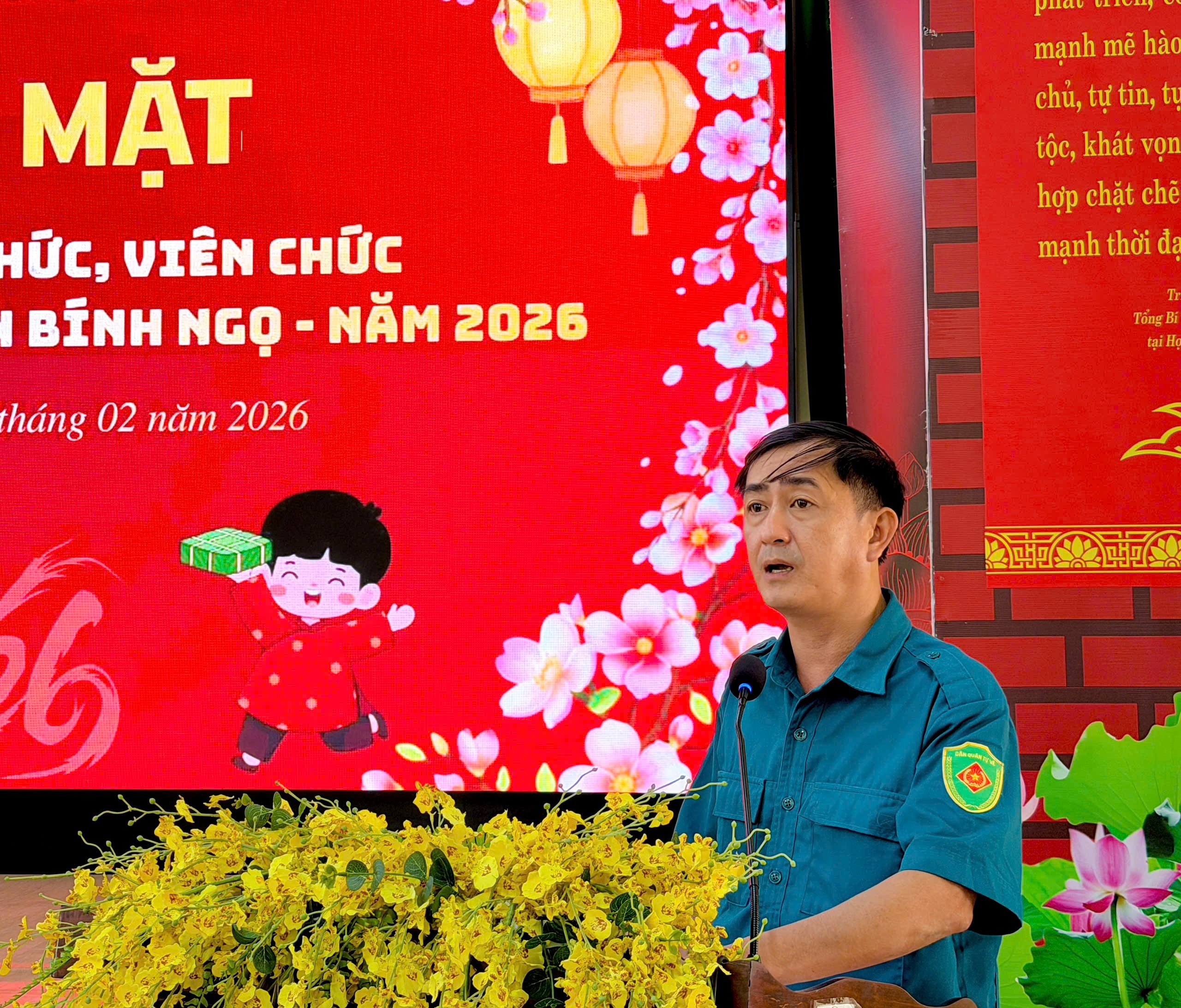 Phát biểu chỉ đạo tại Buổi họp mặt, đồng chí Nguyễn Hồng Thái – Chủ tịch UBND xã yêu cầu toàn thể CBCCVC, NLĐ nêu cao tinh thần trách nhiệm, kỷ luật, kỷ cương hành chính; chủ động xây dựng kế hoạch công tác cụ thể, rõ người, rõ việc, rõ tiến độ; tăng tốc ngay từ đầu năm, quyết tâm hoàn thành thắng lợi các mục tiêu, nhiệm vụ năm 2026. Chủ tịch UBND nhấn mạnh: mỗi cán bộ phải thực sự chuyển từ trạng thái “nghỉ Tết” sang trạng thái “làm việc”, hành động quyết liệt, hiệu quả, đúng tinh thần chỉ đạo “Ăn Tết gọn, làm việc sớm, vào việc ngay”.