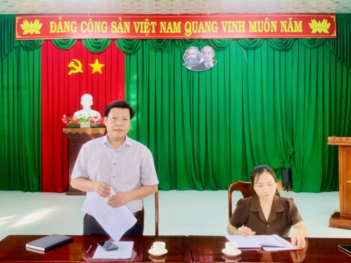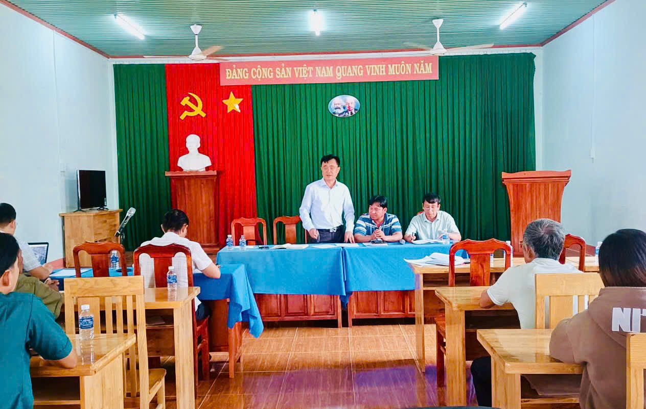 Phó Chủ tịch UBND xã Đặng Quốc Hùng phát biểu tại buổi làm việc với Khu dân cư ấp 1. Hình ảnh: VP HĐND-UBND