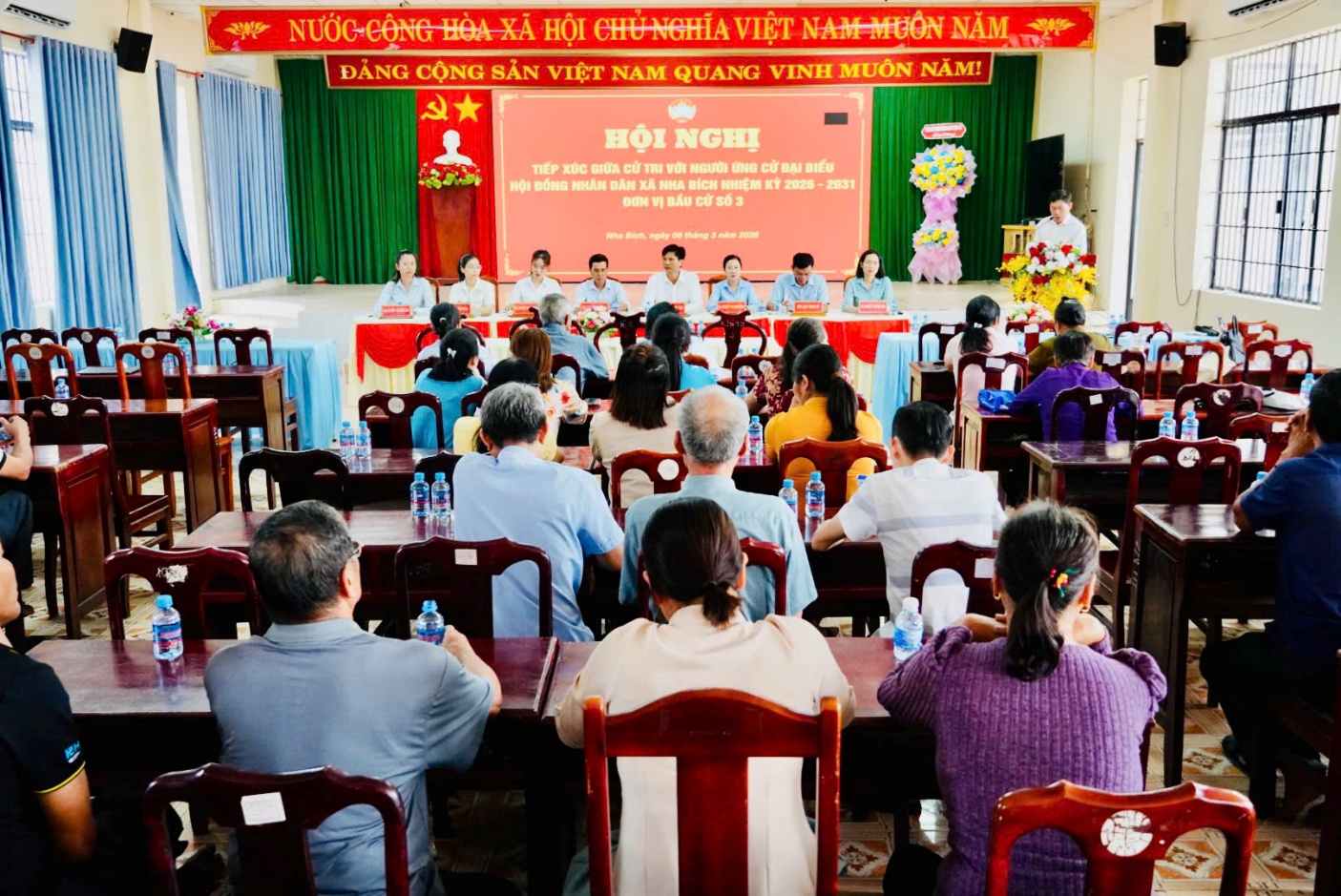 Chiều ngày 06/3/2026, tại Hội trường Đảng ủy xã Nha Bích, Thường trực Ủy ban MTTQ Việt Nam xã Nha Bích đã tổ chức Hội nghị tiếp xúc giữa cử tri với người ứng cử đại biểu HĐND xã Nha Bích nhiệm kỳ 2026 – 2031, thuộc đơn vị bầu cử số 3.