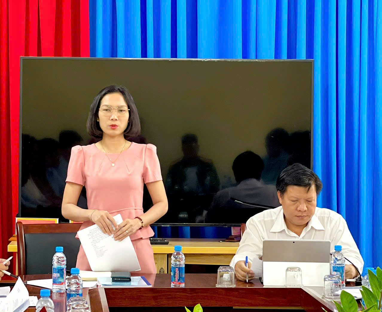Bà Đoàn Thị Thu Hồng – Trưởng phòng VHXH đã thông qua các dự thảo các văn bản tại cuộc họp. Ảnh: Huyền Trang