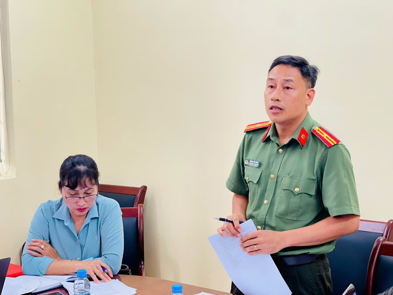 Phó Trưởng Công an xã Trịnh Văn Bình góp ý Dự thảo Thông báo phân công nhiệm vụ tại cuộc họp Ảnh: Huyền Trang