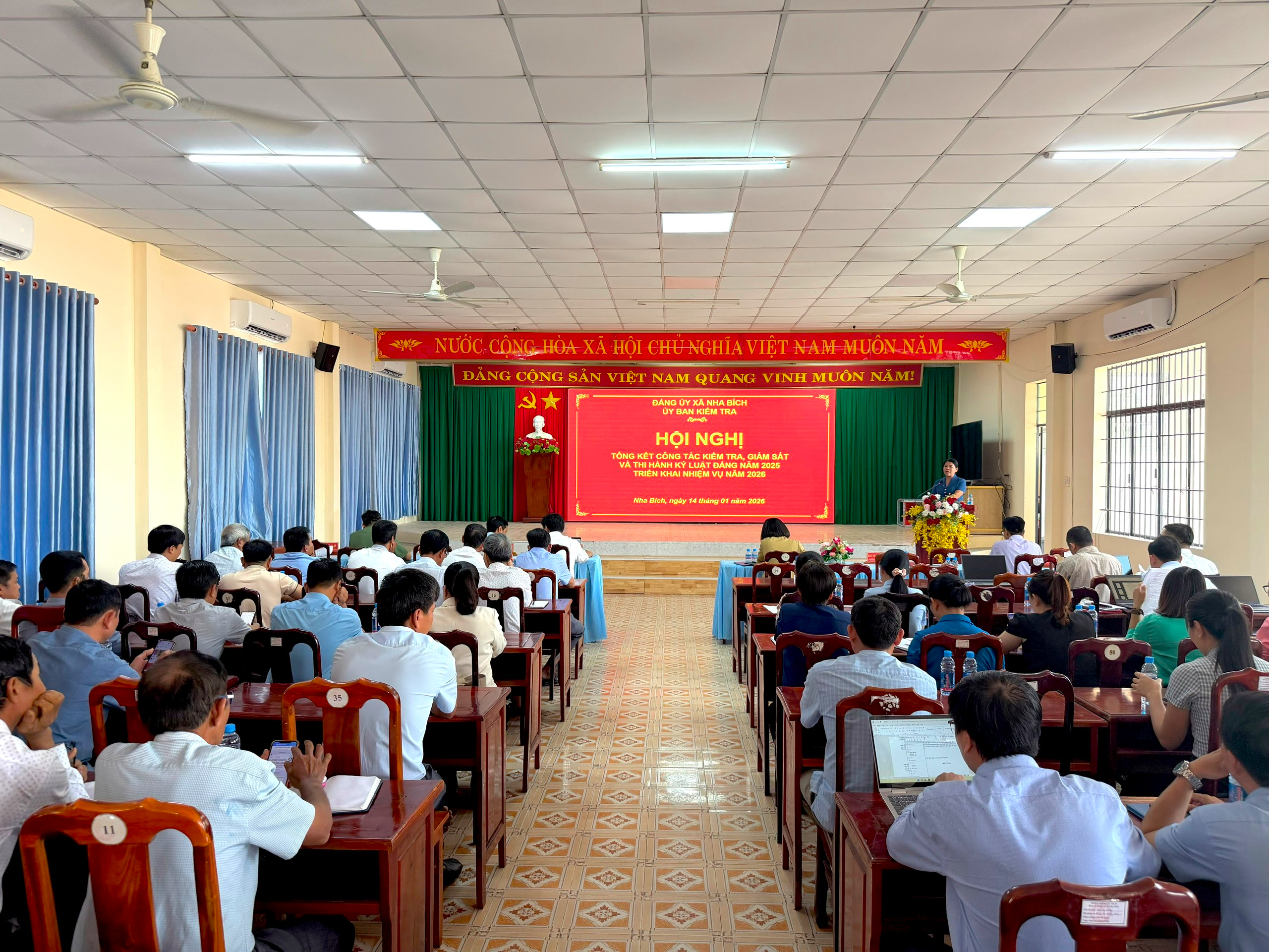 Ngày 14/01/2026, Ủy ban Kiểm tra Đảng ủy xã Nha Bích tổ chức Hội nghị tổng kết công tác kiểm tra, giám sát và thi hành kỷ luật Đảng năm 2025 triển khai nhiệm vụ năm 2026.