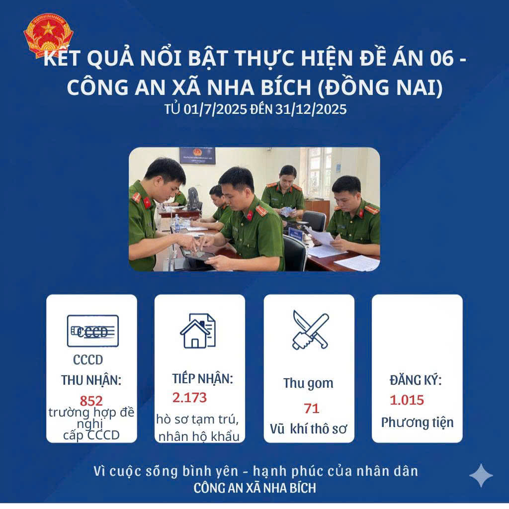 Sáng ngày 05/01/2026, Công an xã Nha Bích tổ chức Hội nghị tổng kết công tác năm 2025 và triển khai phương hướng, nhiệm vụ năm 2026 nhằm đánh giá toàn diện kết quả các mặt công tác trong năm qua, đồng thời đề ra nhiệm vụ, giải pháp trọng tâm trong thời gian tới. Đến dự và chỉ đạo hội nghị có Đại tá Nguyễn Huy Hải - Ủy viên Ban Thường vụ, Phó Giám đốc Công an tỉnh; đồng chí Nguyễn Hồng Thái - Phó Bí thư Đảng uỷ, Chủ tịch UBND xã. Cùng dự hội nghị có đại diện lãnh đạo PV01, Ban Chỉ huy Quân sự xã, lực lượng an ninh, trật tự ở cơ sở và 100% cán bộ, chiến sĩ Công an xã.