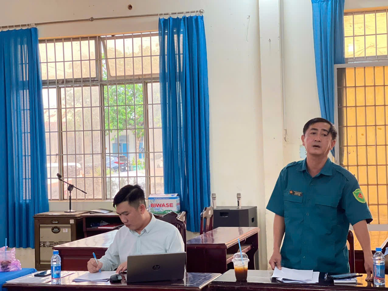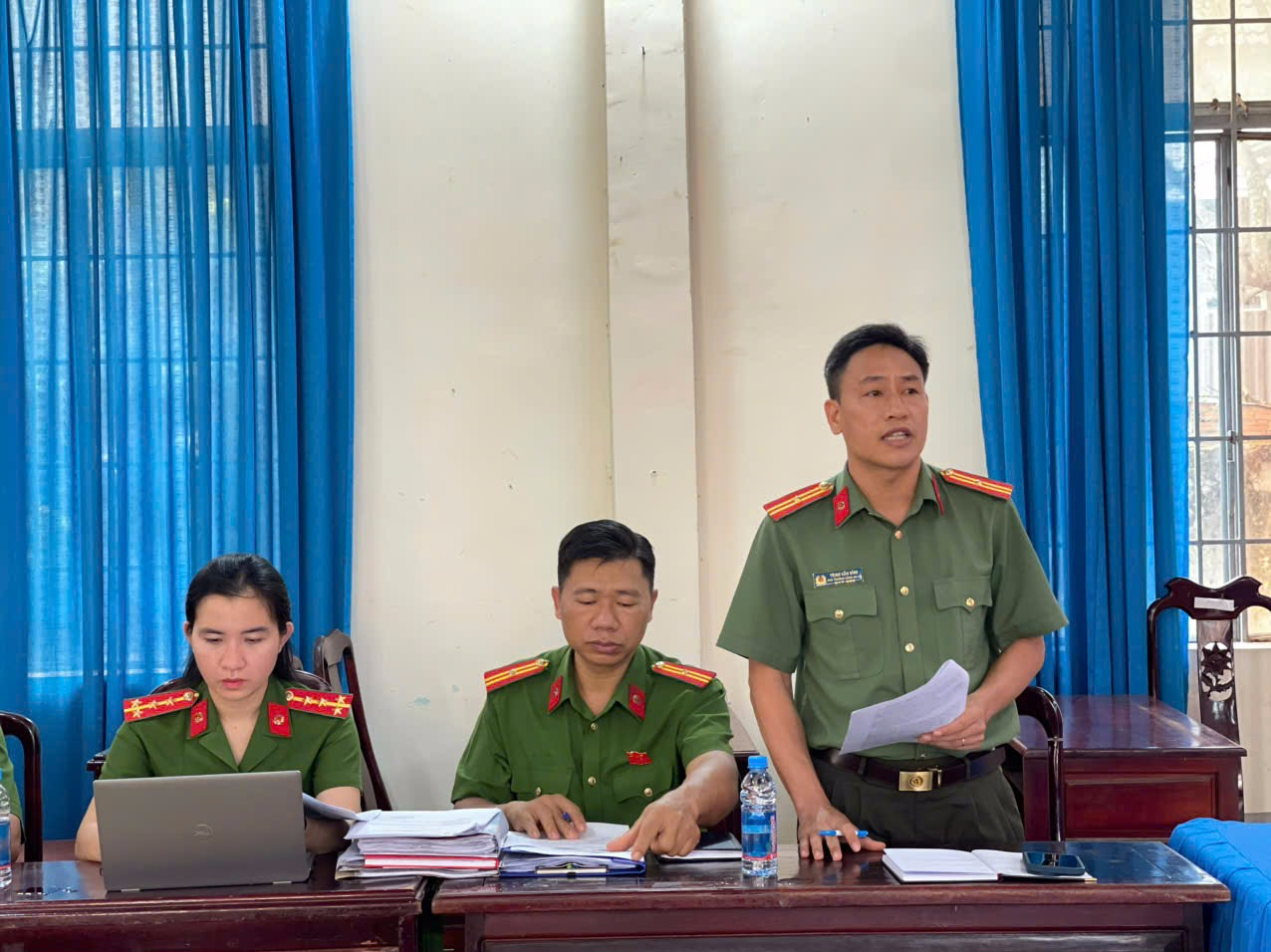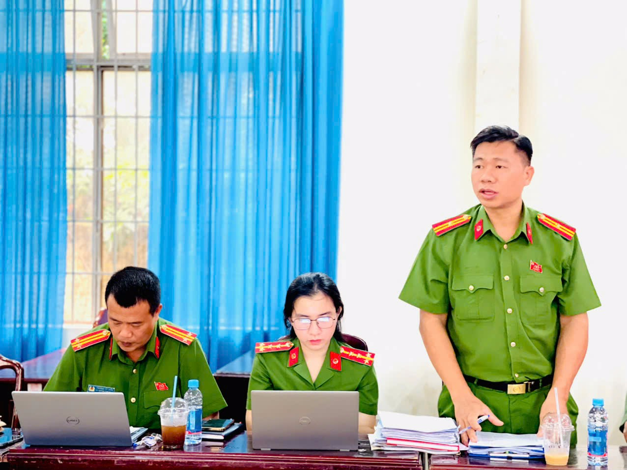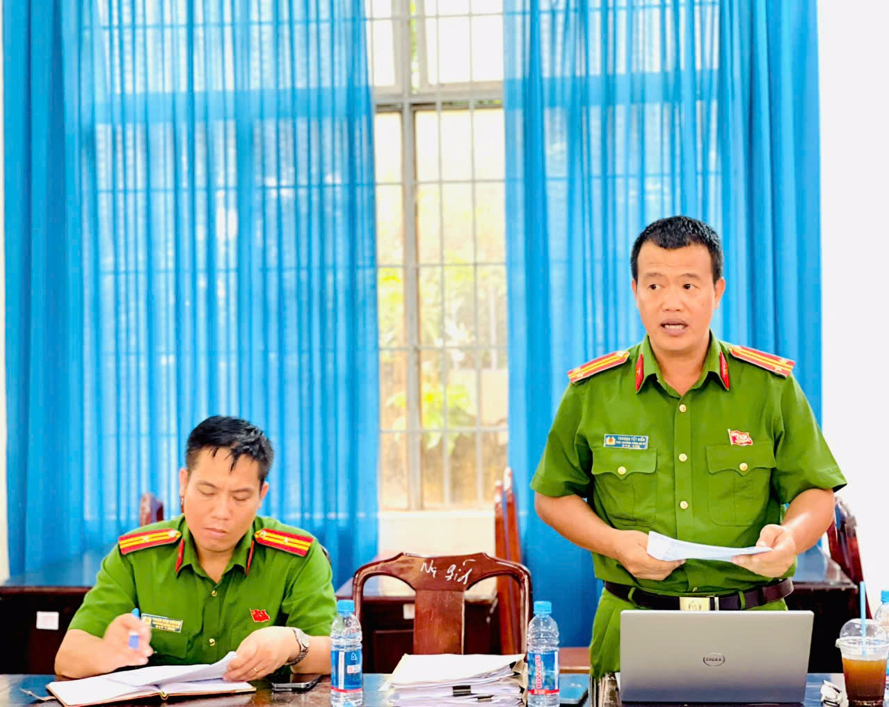 Đồng chí Trịnh Văn Bình Báo cáo Kết quả công tác Lãnh đạo thực hiện nhiệm vụ phòng chống tội phạm, tệ nạn xã hội của Công an xã Nha Bích. Hình ảnh: H.Trang