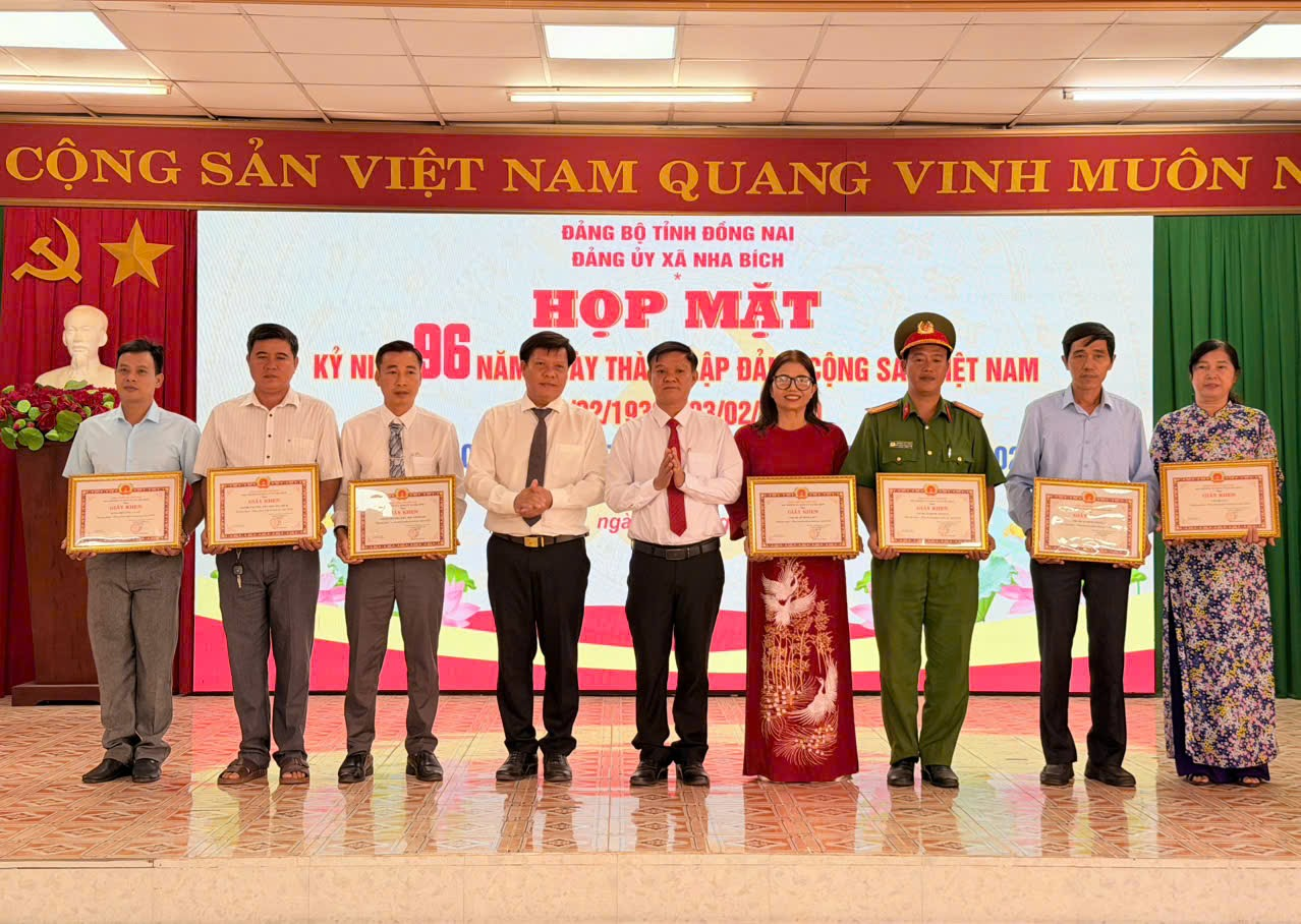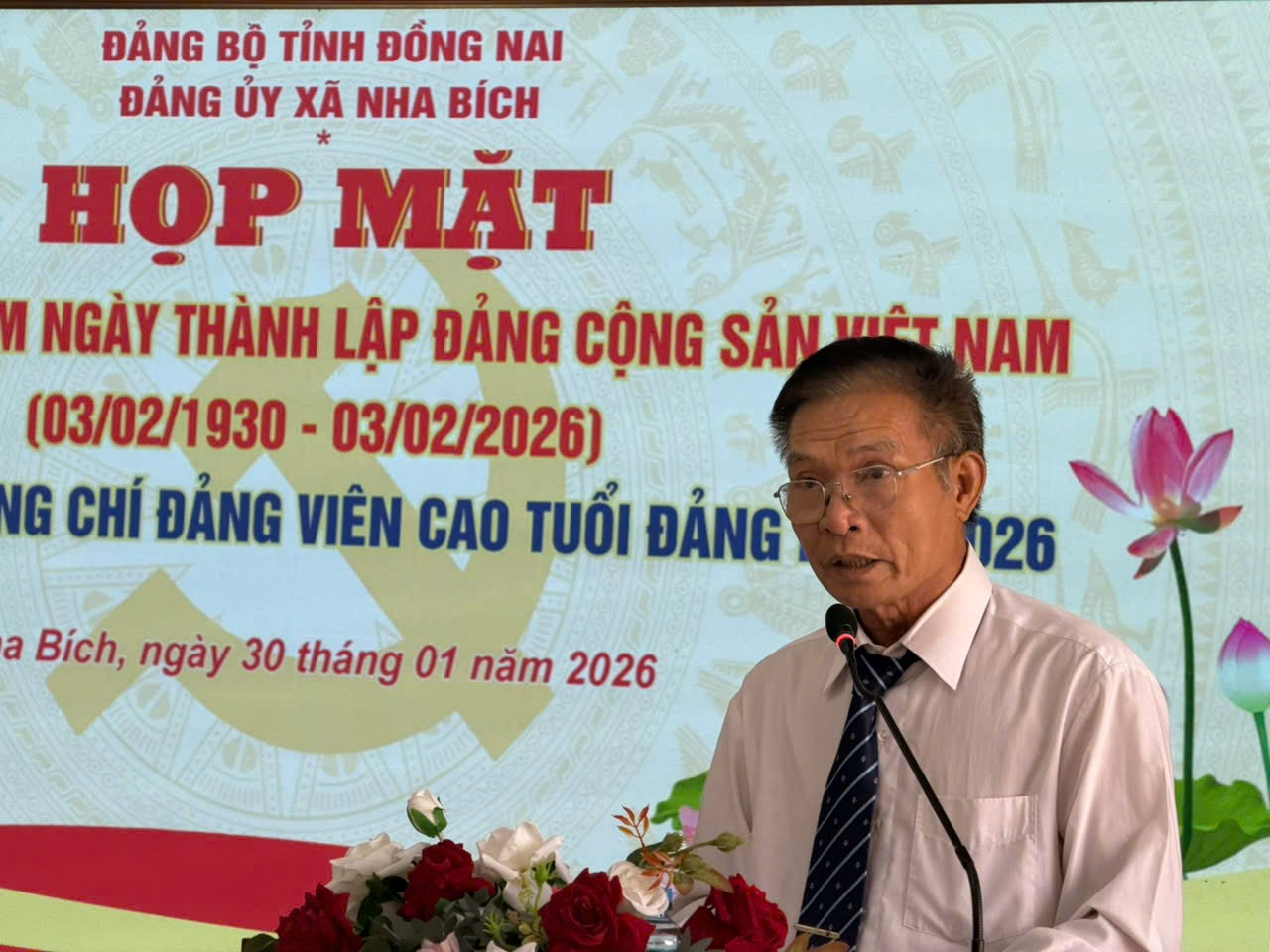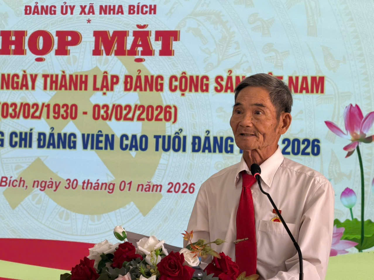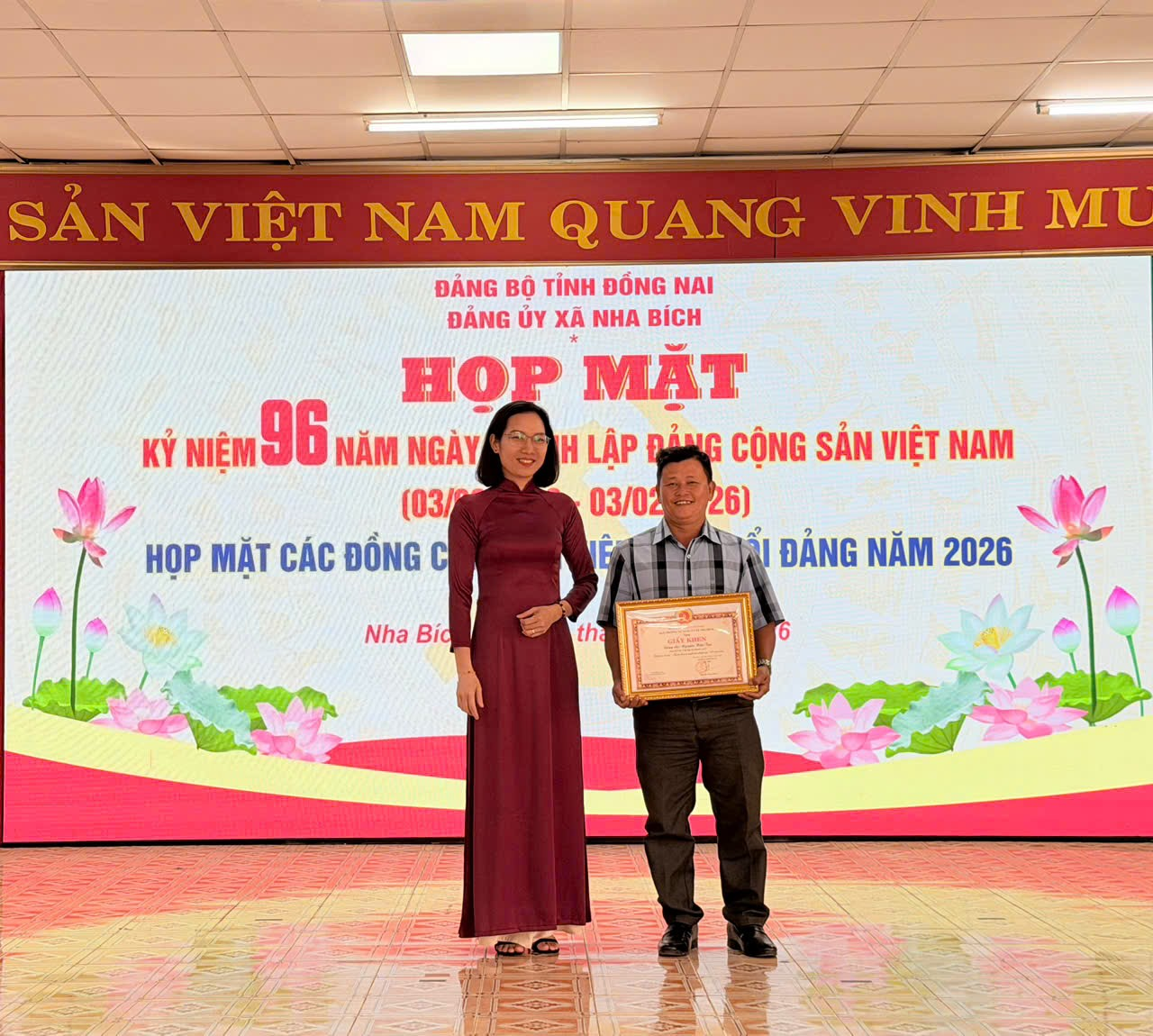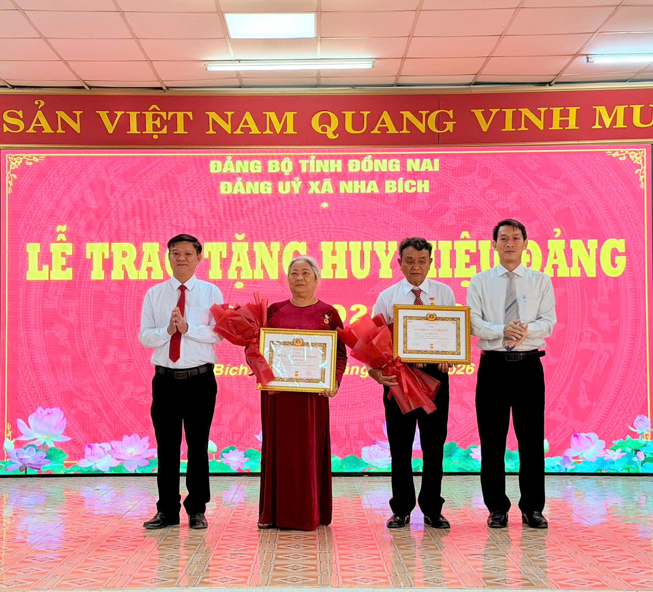 Trong khuôn khổ buổi họp mặt, Đảng ủy xã Nha Bích đã tổ chức trao Huy hiệu Đảng đợt 03/02/2026 cho các đồng chí đảng viên đủ điều kiện; đồng thời khen thưởng các tổ chức đảng và đảng viên hoàn thành xuất sắc nhiệm vụ, nhằm ghi nhận và động viên tinh thần thi đua trong toàn Đảng bộ.