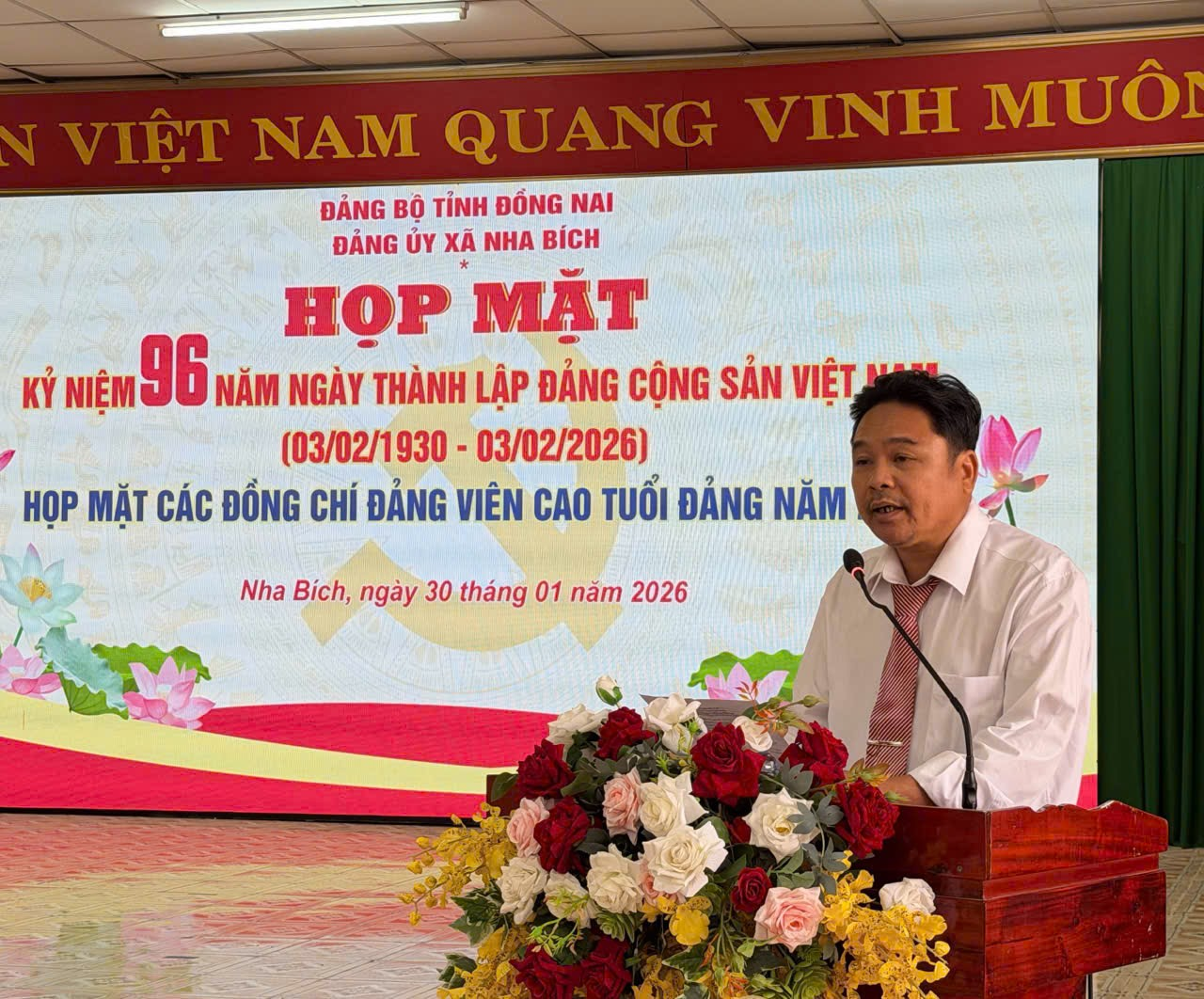 Tại buổi họp mặt, đồng chí Nguyễn Trung Dũng – Bí thư Đảng ủy xã đã phát biểu, ôn lại ý nghĩa lịch sử 96 năm Ngày thành lập Đảng Cộng sản Việt Nam, đồng thời nhấn mạnh vai trò lãnh đạo của Đảng trong sự nghiệp xây dựng và phát triển xã Nha Bích; kêu gọi toàn thể cán bộ, đảng viên tiếp tục phát huy tinh thần đoàn kết, trách nhiệm, nỗ lực hoàn thành tốt các nhiệm vụ được giao.