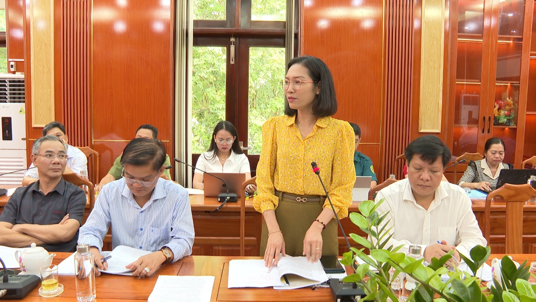 Đồng chí Nguyễn Thị Hải Vân, Phó bí thư Thường trực Đảng ủy, Chủ tịch HĐND xã Nha Bích, báo cáo một số nội dung với tổ thẩm định