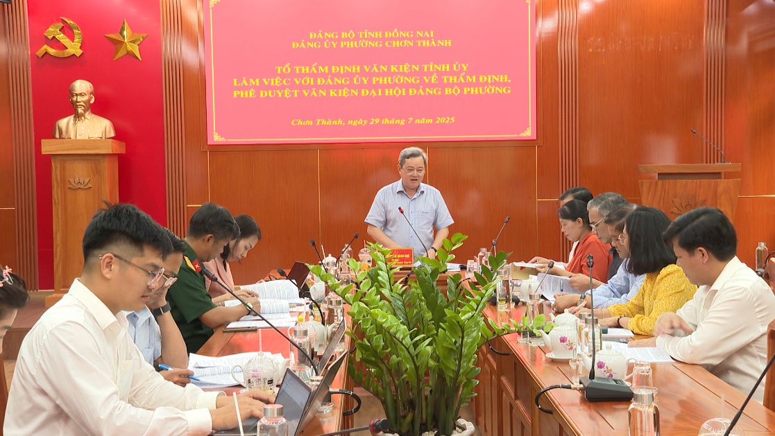Chiều 29-7-2025, Tổ thẩm định số 10 của Tỉnh ủy Đồng Nai, do đồng chí Nguyễn Minh Hợi, Ủy viên Ban Thường vụ Tỉnh ủy, Trưởng Ban Nội chínhTỉnh ủy làm Tổ trưởng, đã có buổi làm việc với Ban Thường vụ Đảng ủy xã Nha Bích, về thẩm định Văn kiện Đại hội Đảng bộ xã Nha Bích, nhiệm kỳ 2025-2030.