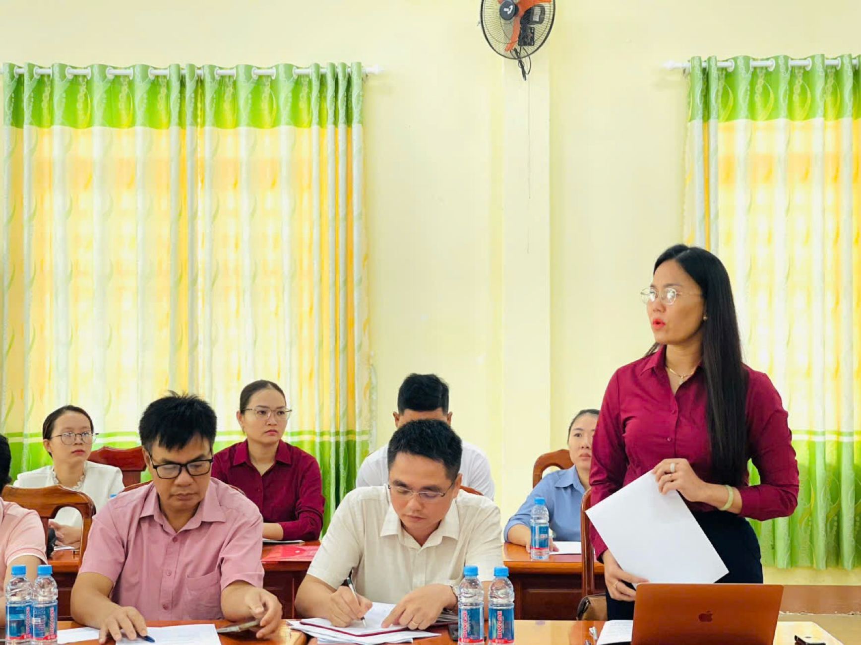 Trưởng Ban Xây dựng Đảng Phạm Thị Yến Linh thông qua nội dung cuộc họp. Hình ảnh: H.Trang