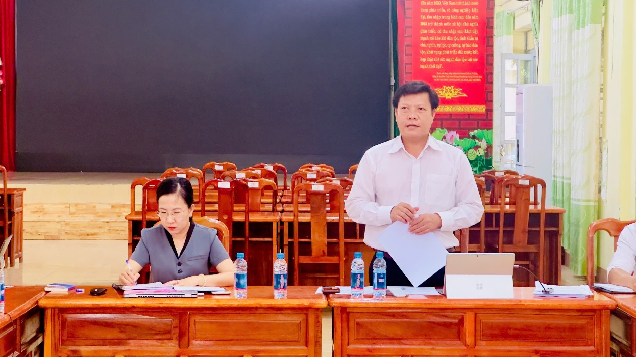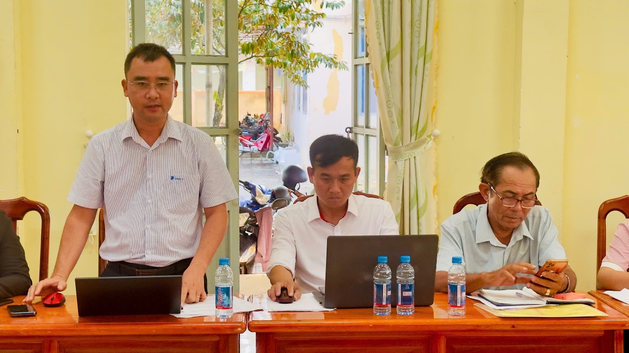 Chủ tịch UBND xã Nha Bích - Nguyễn Hồng Thái phát biểu chỉ đạo tại cuộc họp. Hình ảnh: Bá Lợi.