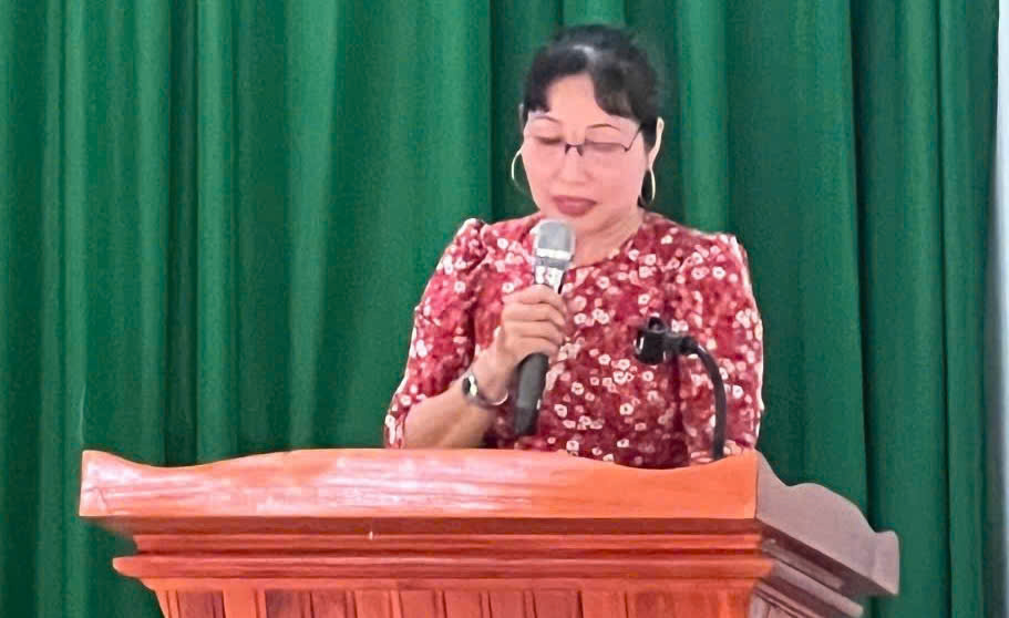 Phó Chủ tịch Ủy ban Mặt trận Tổ quốc Việt Nam, Chủ tịch Hội LHPN xã Thị Cúc phát biểu chỉ đạo tại Ngày hội đại đoàn kết toàn dân tộc. Hình ảnh: Bá Lợi.