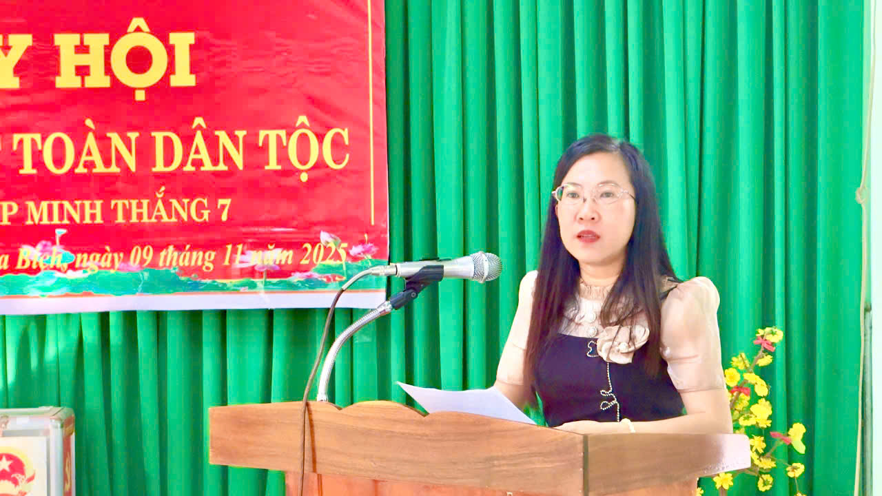 Phó Chủ tịch UBND xã Nguyễn Thị Minh Tiền phát biểu chỉ đạo tại Ngày hội. Hình ảnh: Bá Lợi.