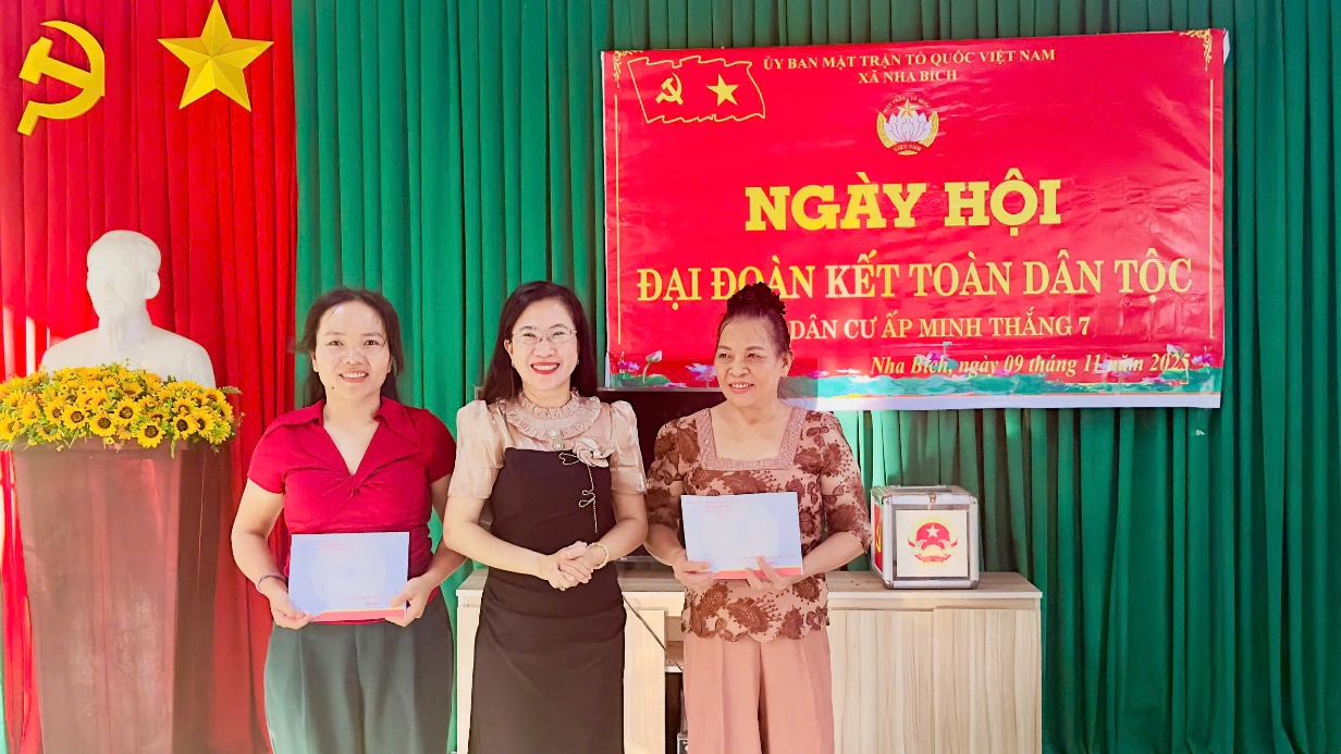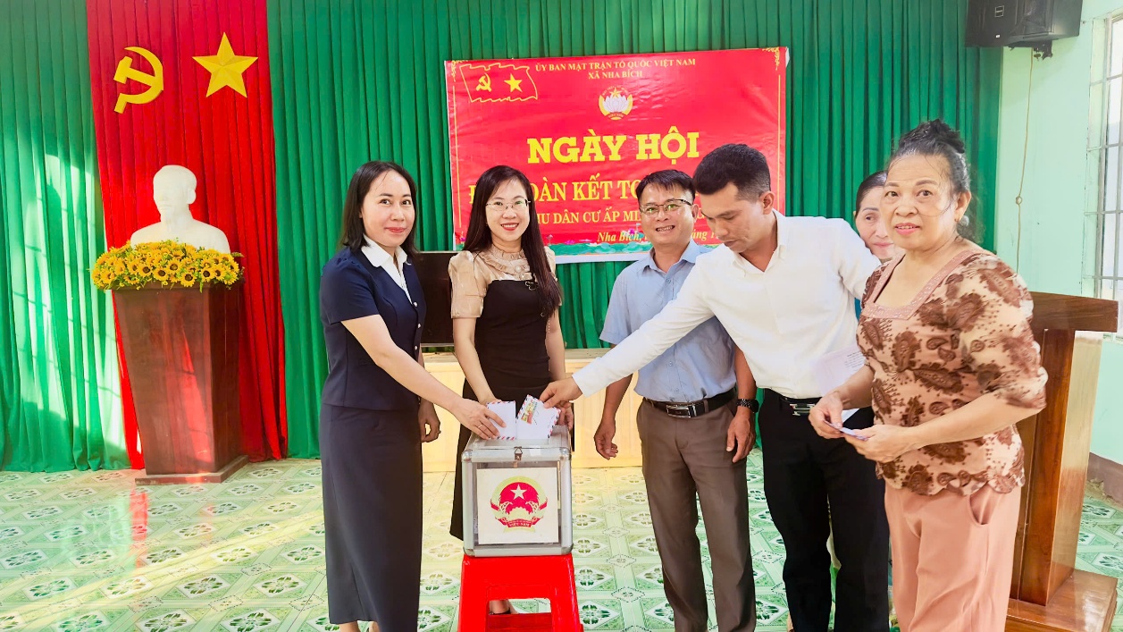 Phát biểu chỉ đạo tại Ngày hội, Đồng chí Thị Cúc - Phó Chủ tịch Ủy ban Mặt trận Tổ quốc Việt Nam, Chủ tịch Hội LHPN xã Nha Bích nhấn mạnh một số nội dung: Chi ủy, Ban nhân dân, Ban Công tác Mặt trận ở cơ sở tăng cường đối thoại, gần dân, sát dân, nghe dân nói, nói dân hiểu, làm dân tin. Xây dựng mô hình, hình thức vận động khối đại đoàn kết toàn dân phù hợp với đặc trưng của khu dân cư...