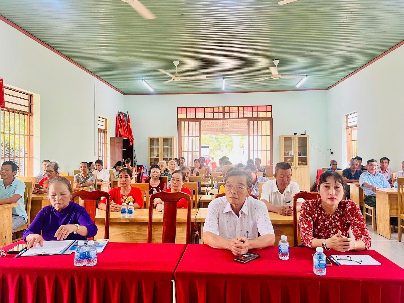 Các đồng chí Ủy viên Ban thường vụ Đảng ủy xã, Ủy viên Ủy ban Mặt trận Tổ quốc Việt Nam xã tới dự và trao tặng khen thưởng cho các khu dân cư.