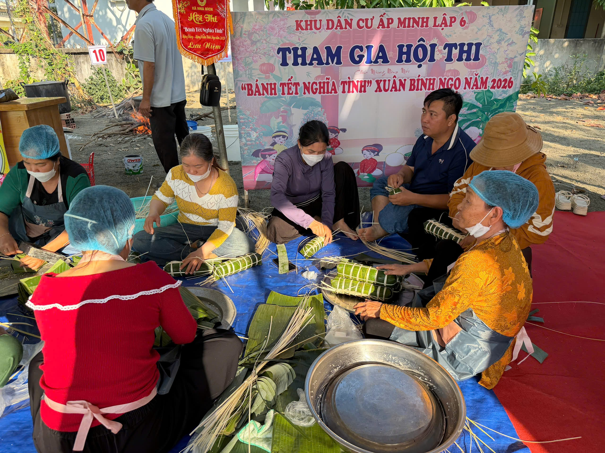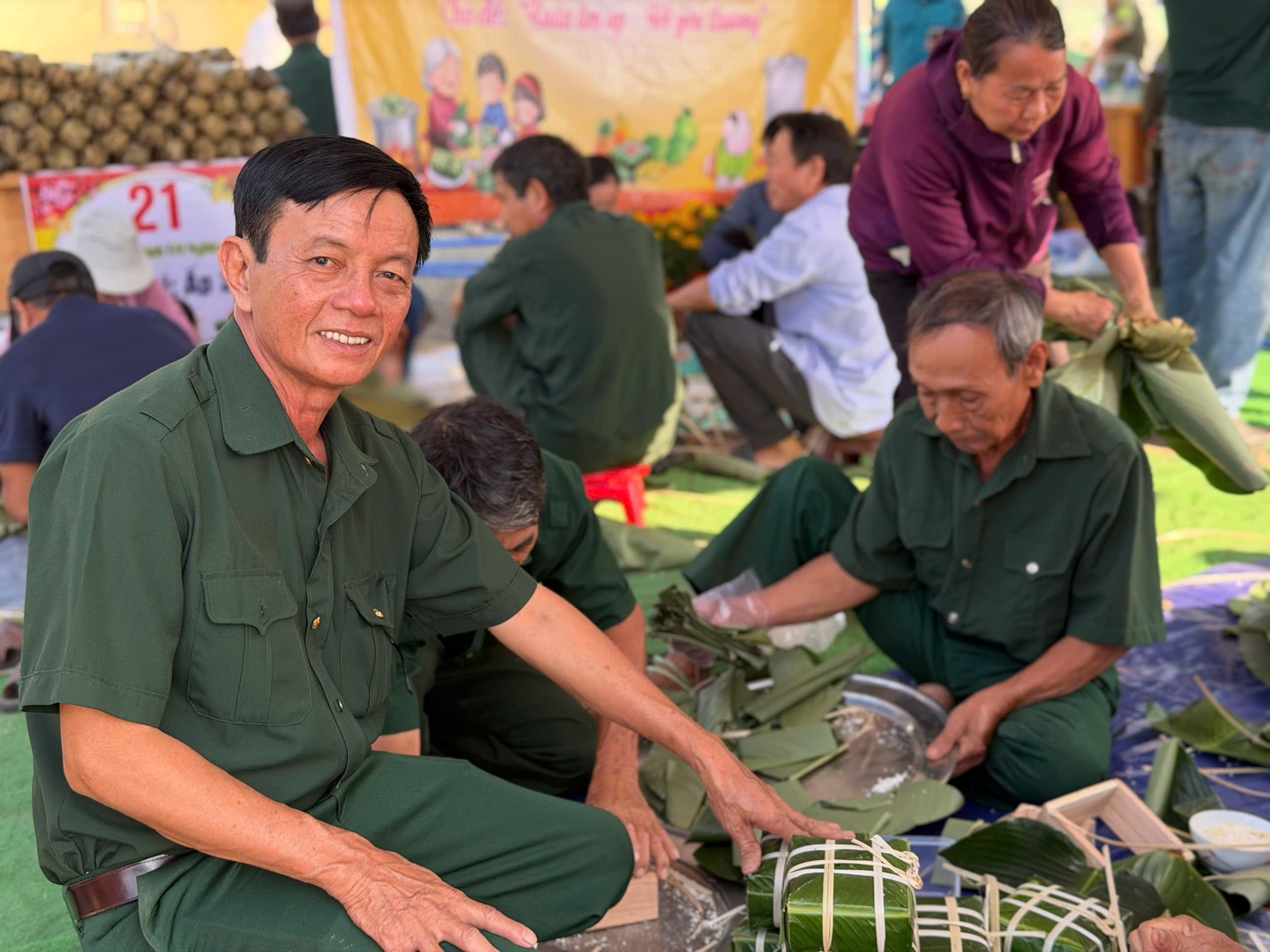Ngay từ sáng sớm, khu vực tổ chức hội thi đã rộn ràng tiếng nói cười. Những đôi tay quen cầm súng năm xưa, nay lại khéo léo bên nếp, đậu, lá chuối. Mỗi đòn bánh tét không chỉ được gói bằng sự tỉ mỉ, khéo léo mà còn gửi gắm trong đó nghĩa tình đồng đội, tinh thần sẻ chia và trách nhiệm với cộng đồng.