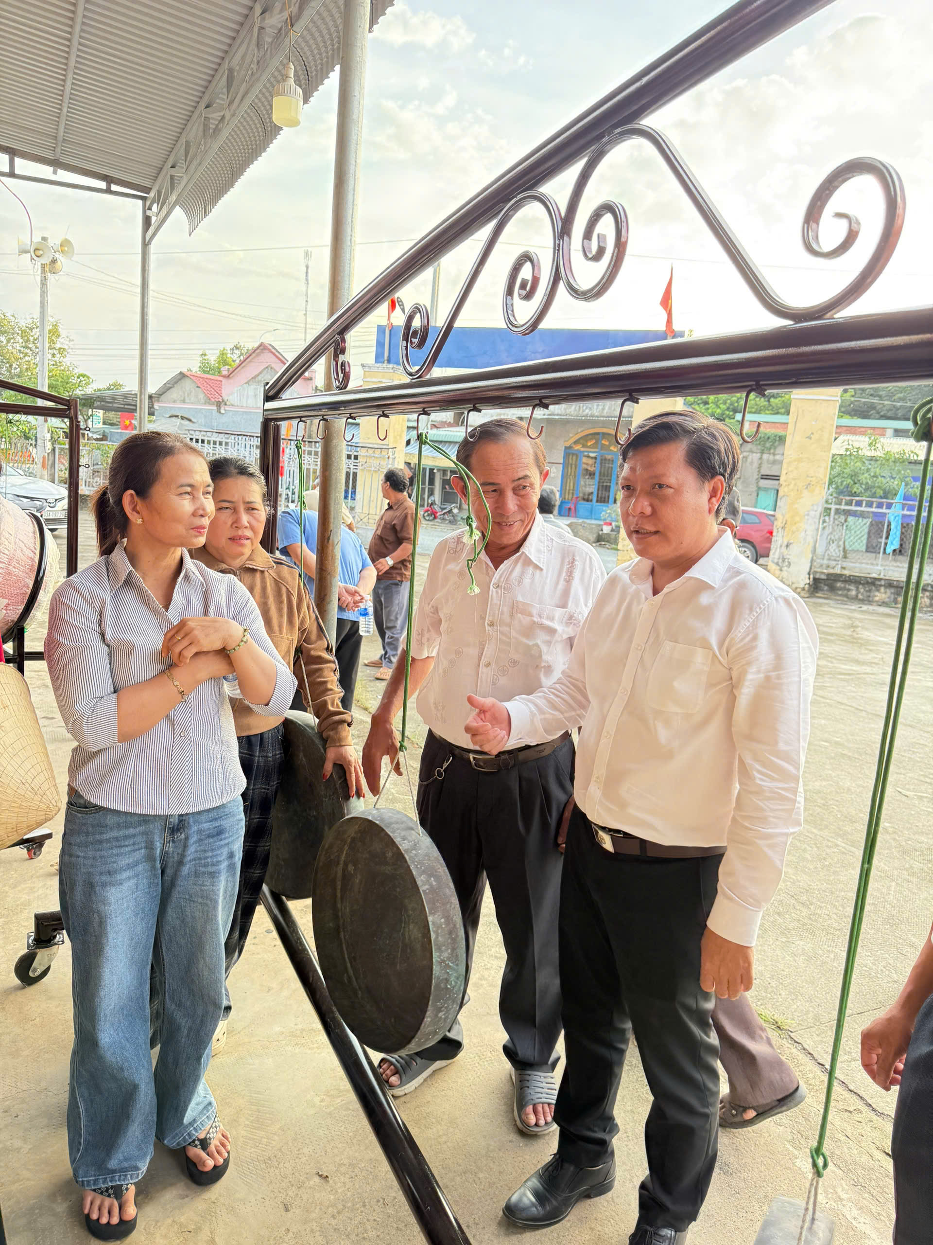 Hình ảnh: Ông Nguyễn Hồng Thái - PBT. Đảng uỷ, Chủ tịch UBND xã gặp gỡ đại diện câu lạc bộ Cồng chiêng ấp 6