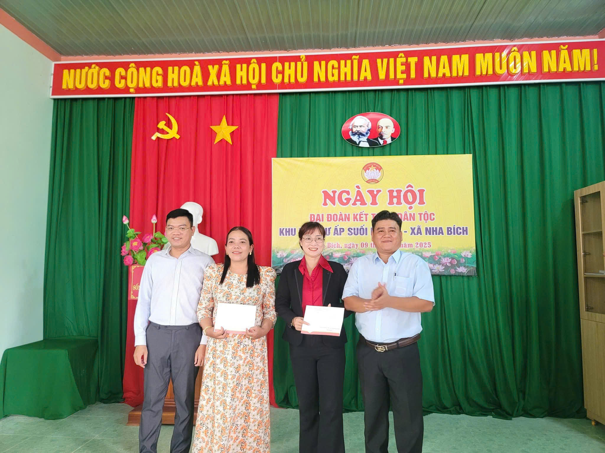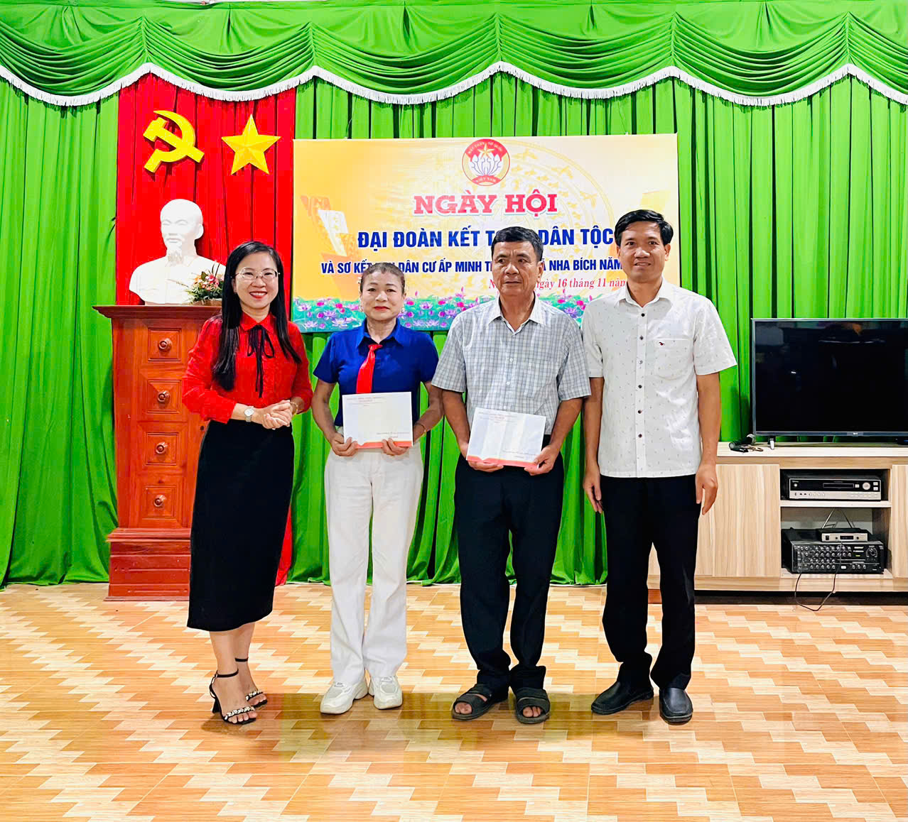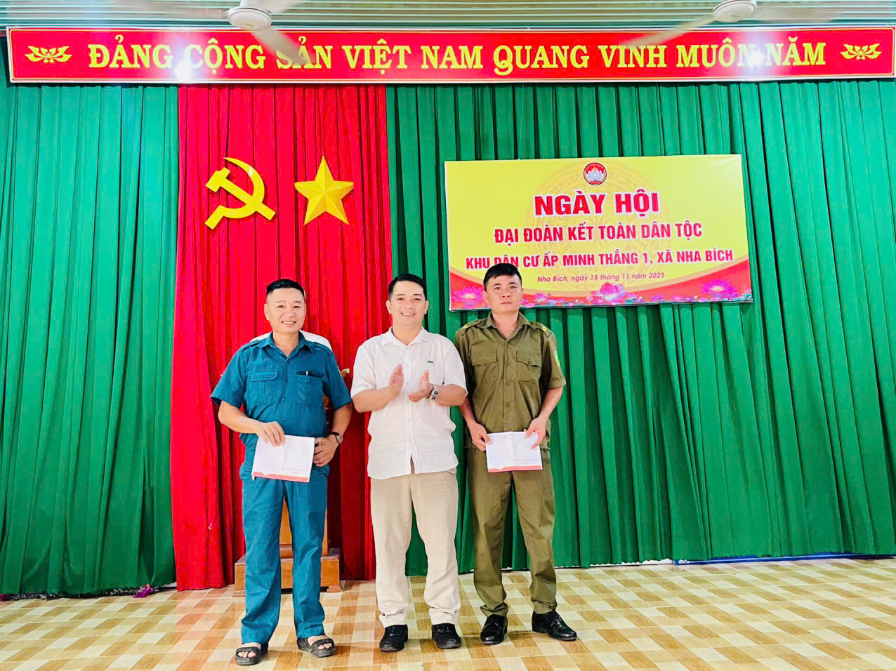 Với sự chung sức đồng lòng, khối đại đoàn kết trong cộng đồng dân cư ở các ấp ngày càng được củng cố; tinh thần tương thân tương ái, ý thức trách nhiệm của người dân đối với cộng đồng được nâng lên, góp phần xây dựng khu dân cư ngày càng văn minh, đoàn kết và phát triển.Nhân kỷ niệm 95 năm Ngày truyền thống Mặt trận dân tộc thống nhất Việt Nam (18/11/1930 - 18/11/2025), từ ngày 7/11 đến ngày 16/11, các khu dân cư xã Nha Bích đồng loạt tổ chức Ngày hội Đại đoàn kết toàn dân tộc năm 2025. Đến dự với các khu dân cư có sự tham gia của các đồng chí lãnh đạo Đảng ủy, HĐND, UBND, Ủy ban MTTQ Việt Nam xã; thủ trưởng các phòng, ban, ngành, các tổ chức chính trị xã hội xã đã đến dự, động viên phong trào của các khu dân cư.