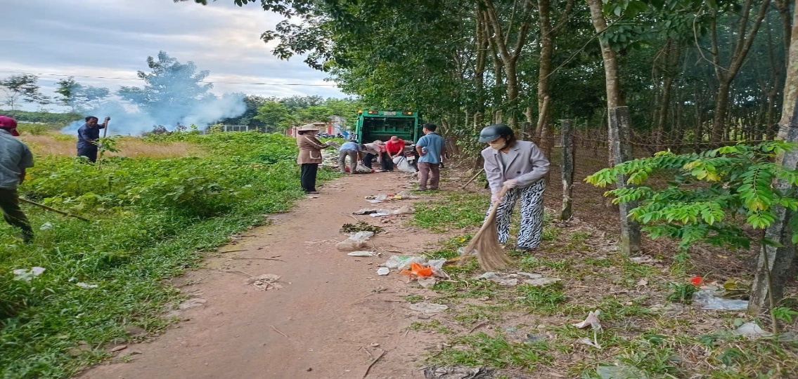 Nhân dân xã Nha Bích dọn dẹp vệ sinh môi trường. Ảnh Tiến Công