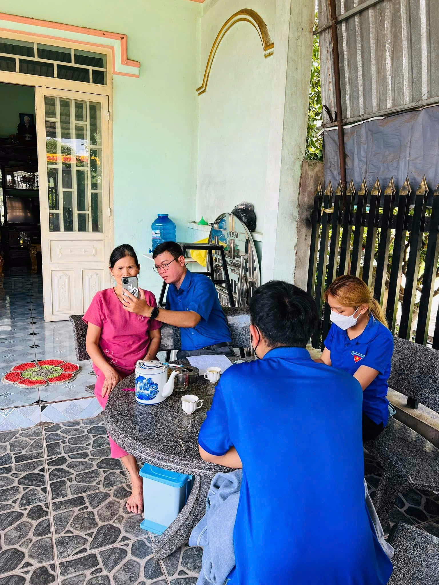 Đoàn Thanh niên xã hướng dẫn và hỗ trợ người dân thực hiện sinh trắc học. Ảnh: H. Trang
