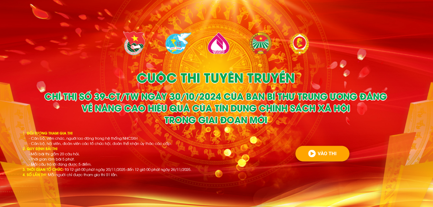 Thực hiện Kế hoạch số 559/KH-CĐNHCS ngày 10/9/2025 của Công đoàn Ngân hàng Chính sách xã hội (NHCSXH) về việc tổ chức Cuộc thi tìm hiểu Chỉ thị số 39-CT/TW ngày 30/10/2024 của Ban Bí thư Trung ương Đảng về nâng cao hiệu quả tín dụng chính sách xã hội trong giai đoạn mới, Phòng Giao dịch NHCSXH Chơn Thành đã chủ động triển khai, vận động toàn thể cán bộ, người lao động trong đơn vị, đồng thời phối hợp tích cực với cán bộ hội đoàn thể nhận ủy thác tại địa phương tham gia Cuộc thi “Tìm hiểu Chỉ thị 39-CT/TW của Ban Bí thư về nâng cao hiệu quả tín dụng chính sách xã hội trong giai đoạn mới”.