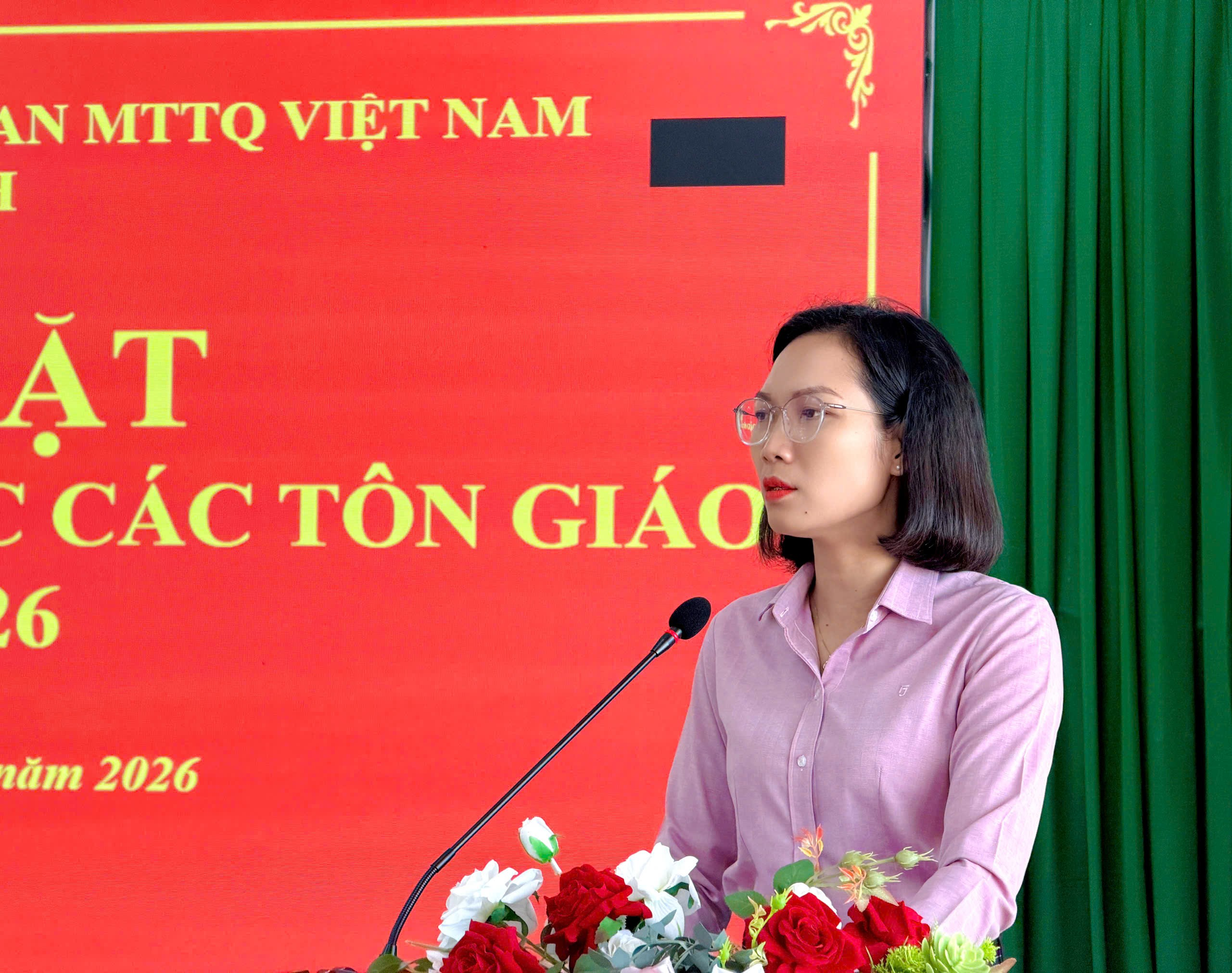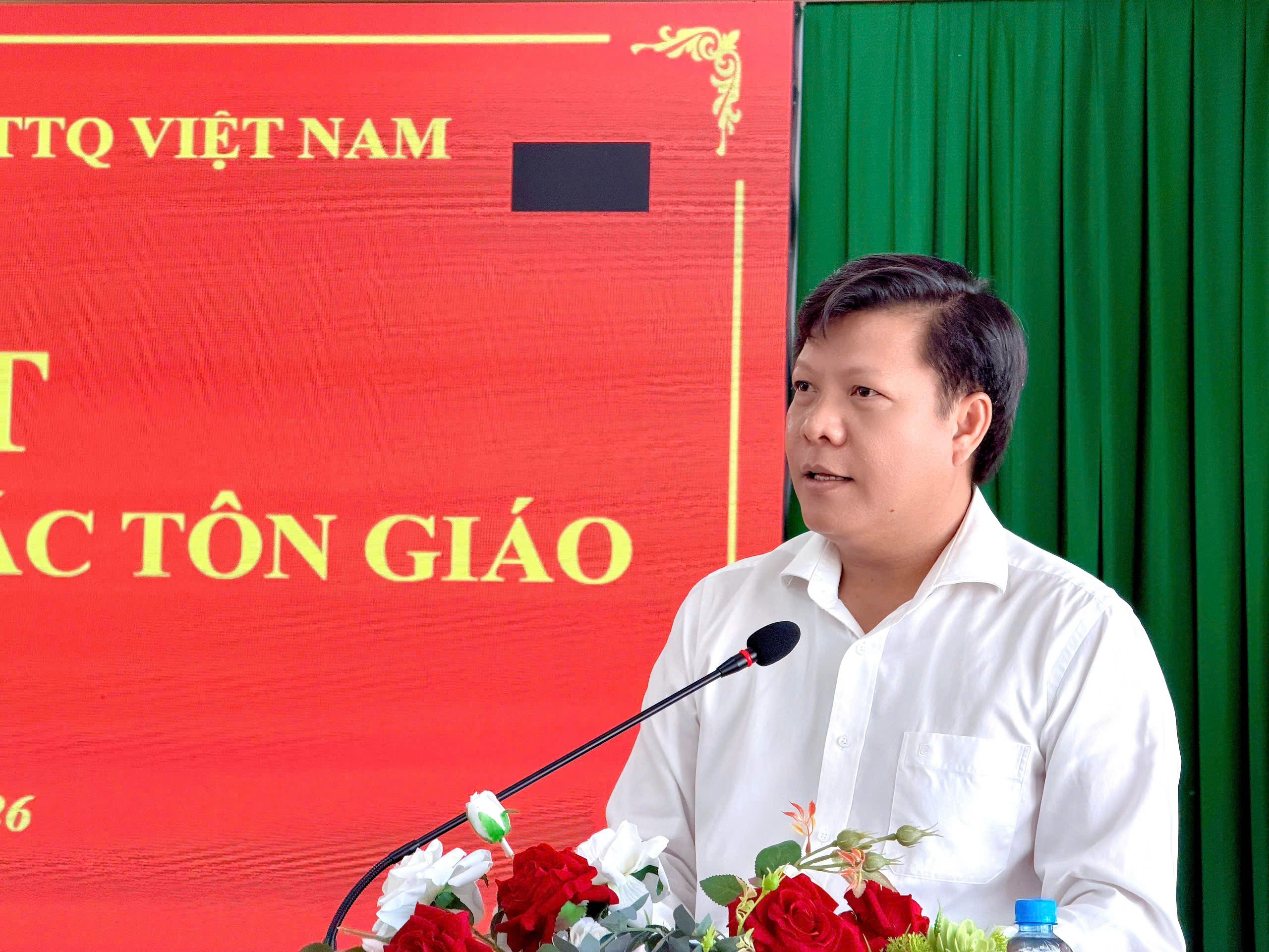 Phát biểu chào mừng tại buổi họp mặt, ông Hoàng Văn Thái – Ủy viên Ban Thường vụ Đảng ủy, Chủ tịch Ủy ban MTTQ Việt Nam xã đã gửi lời thăm hỏi, chúc sức khỏe đến các vị chức sắc, chức việc và đồng bào các tôn giáo; đồng thời ghi nhận, biểu dương những đóng góp tích cực của các tổ chức tôn giáo trong việc vận động tín đồ chấp hành tốt chủ trương của Đảng, chính sách, pháp luật của Nhà nước, tích cực tham gia các phong trào thi đua yêu nước và các cuộc vận động do Mặt trận Tổ quốc phát động.