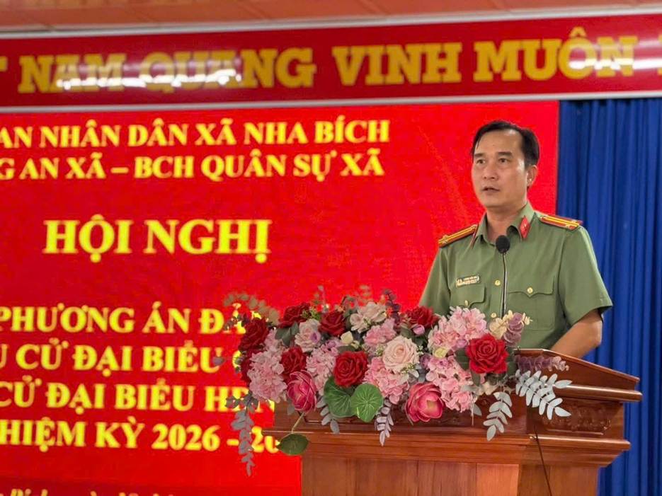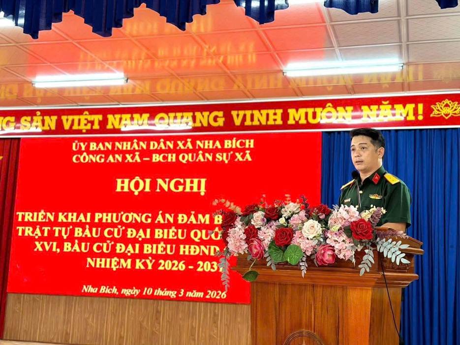 <p style="text-align:justify;">Chiều ngày 10/3/2026, tại Hội trường Công an xã Nha Bích, Ban Chỉ huy Quân sự phối hợp với xã&nbsp;Công an xã Nha Bích tổ chức Hội nghị triển khai phương án bảo đảm an ninh, trật tự phục vụ bầu cử đại biểu Quốc hội khóa XVI và bầu cử đại biểu Hội đồng nhân dân các cấp nhiệm kỳ 2026 - 2031.</p><p style="text-align:justify;">&nbsp;Hội nghị do đồng chí Thiếu tá Phạm Văn Vương - Phó Trưởng Công an xã Nha Bích, thừa ủy quyền của đồng chí Trưởng Công an xã &nbsp;cùng&nbsp;đồng chí Trung úy Nguyễn Thành Trung - Phó Chỉ huy trưởng Ban Chỉ huy Quân sự xã đồng chủ trì. Tham dự hội nghị có các đồng chí trong Ban Chỉ huy Quân sự&nbsp;xã; 100% cán bộ, chiến sĩ Công an xã; lực lượng tham gia bảo vệ an ninh trật tự ở cơ sở tại các ấp và lực lượng dân quân thường trực xã.</p><p style="text-align:justify;"><img class="image_resized" style="aspect-ratio:623/467;width:100%;" src="https://nhabich.dongnai.gov.vn/uploads/nhabich/news/2026_03/image_95.png" width="623" height="467" /></p><p style="text-align:center;"><i>Toàn cảnh Hội nghị</i></p><p style="text-align:justify;">Tại hội nghị, các đại biểu đã được nghe đồng chí&nbsp;&nbsp;Thiếu tá Phạm Văn Vương - Phó Trưởng Công an xã Nha Bích, thừa ủy quyền của đồng chí Trưởng Công an xã &nbsp;quán triệt sâu sắc ý nghĩa, tầm quan trọng của cuộc bầu cử đại biểu Quốc hội khóa XVI và đại biểu HĐND các cấp nhiệm kỳ 2026 - 2031, qua đó nâng cao nhận thức, trách nhiệm của các lực lượng trong công tác bảo đảm an ninh, trật tự phục vụ cuộc bầu cử - sự kiện chính trị quan trọng, ngày hội lớn của toàn dân.</p><p style="text-align:justify;"><img class="image_resized" style="aspect-ratio:623/467;width:100%;" src="https://nhabich.dongnai.gov.vn/uploads/nhabich/news/2026_03/image_96.png" width="623" height="467" /></p><p style="text-align:center;"><i>Đồng chí &nbsp;Thiếu tá Phạm Văn Vương - Phó Trưởng Công an xã Nha Bích&nbsp;quán triệt sâu sắc ý nghĩa, tầm quan trọng của cuộc bầu cử đại biểu Quốc hội khóa XVI và đại biểu HĐND các cấp nhiệm kỳ 2026 - 2031</i></p><p style="text-align:justify;">&nbsp;&nbsp;&nbsp;&nbsp;&nbsp;&nbsp;&nbsp;&nbsp;&nbsp; Phát biểu tại hội nghị, đồng chí Trung úy Nguyễn Thành Trung - Phó Chỉ huy trưởng Ban Chỉ huy Quân sự xã nhấn mạnh vai trò của lực lượng quân sự trong việc phối hợp chặt chẽ với Công an xã và các lực lượng ở cơ sở, sẵn sàng triển khai các phương án bảo đảm an ninh, trật tự, giữ vững ổn định địa bàn, góp phần phục vụ tốt nhiệm vụ chính trị của địa phương.</p><p style="text-align:justify;"><img class="image_resized" style="aspect-ratio:623/467;width:100%;" src="https://nhabich.dongnai.gov.vn/uploads/nhabich/news/2026_03/image_97.png" width="623" height="467" /></p><p style="text-align:center;"><i>Đồng chí Trung úy Nguyễn Thành Trung - Phó Chỉ huy trưởng Ban Chỉ huy Quân sự xã phát biểu tại hội nghị</i></p><p style="text-align:justify;">Cũng tại hội nghị, đồng chí Trung tá Lương Văn Sơn - Phó Trưởng Công an xã đã phát biểu yêu cầu toàn thể cán bộ, chiến sĩ và các lực lượng phối hợp nâng cao tinh thần trách nhiệm, chủ động nắm chắc tình hình địa bàn, quản lý chặt các đối tượng, tăng cường tuần tra, kiểm soát, kịp thời phát hiện và xử lý các vấn đề phát sinh, không để bị động, bất ngờ trong mọi tình huống.</p><p style="text-align:justify;"><img class="image_resized" style="aspect-ratio:623/467;width:100%;" src="https://nhabich.dongnai.gov.vn/uploads/nhabich/news/2026_03/image_98.png" width="623" height="467" /></p><p style="text-align:center;"><i>Đồng chí Trung tá Lương Văn Sơn - Phó Trưởng Công an xã đã phát biểu chỉ đạo</i></p><p style="text-align:justify;">Theo đó,&nbsp;cuộc bầu cử đại biểu Quốc hội khóa XVI và đại biểu Hội đồng nhân dân các cấp nhiệm kỳ 2026 – 2031 sẽ được tổ chức trên phạm vi cả nước vào Chủ nhật, ngày 15/3/2026. Đây là sự kiện chính trị quan trọng của đất nước, là ngày hội lớn của toàn dân, thể hiện quyền làm chủ của Nhân dân trong việc xây dựng bộ máy Nhà nước.</p>