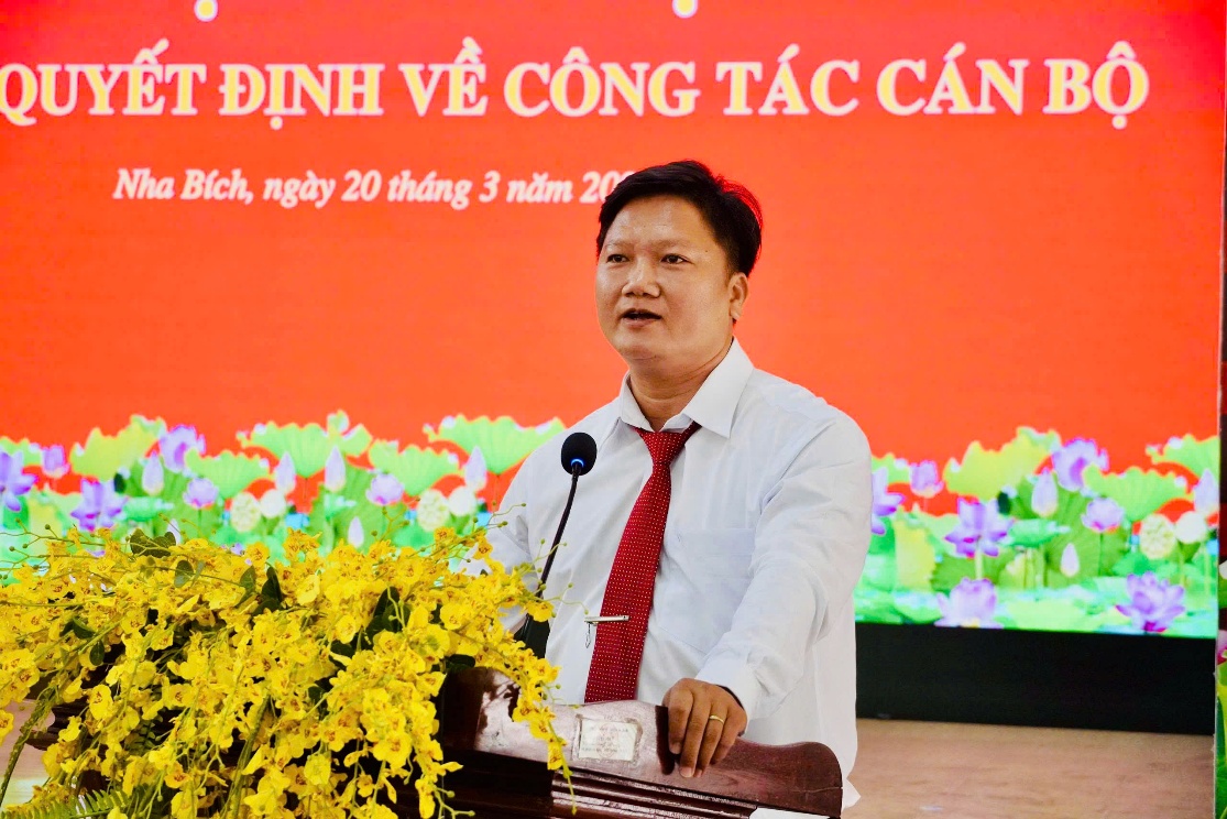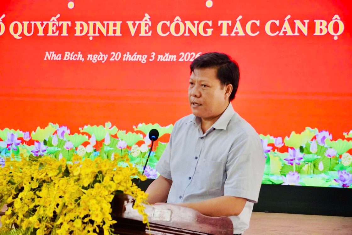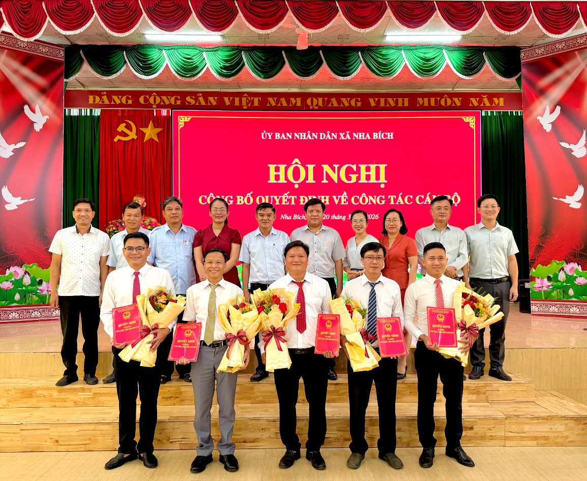 <p style="text-align:justify;">Vừa qua UBND xã Nha Bích tổ chức Hội nghị công bố quyết định về công tác cán bộ. Dự hội nghị có đồng chí Nguyễn Trung Dũng - Bí thư Đảng ủy xã;&nbsp;đồng chí Nguyễn Hồng Thái – Phó Bí thư Đảng ủy,&nbsp;Chủ tịch UBND xã;&nbsp;các đồng chí Phó Chủ tịch UBND&amp;HĐND xã; cùng lãnh đạo, công chức, viên chức các Phòng, Ban,&nbsp;Cơ quan&nbsp;xã.</p><p style="text-align:center;"><img src="https://nhabich.dongnai.gov.vn/uploads/nhabich/news/2026_03/image_40.jpeg" width="1238" height="825" /></p><p style="text-align:center;"><i>Đại biểu dự Hội nghị</i></p><p style="text-align:justify;">Tại hội nghị, UBND xã đã công bố và trao 5 quyết định bổ nhiệm cán bộ&nbsp;gồm: ông Trần Văn Hoàng giữ chức Giám đốc Trung tâm Phục vụ Hành chính công xã; ông Ngô Xuân Thắng – Phó chánh Văn phòng HĐND&amp;UBND xã; ông Đỗ Đình Lanh giữ chức Phó Giám đốc Trung tâm Dịch vụ Tổng hợp xã; ông Nguyễn Tiến Tài giữ chức Phó Trưởng Phòng Kinh tế xã; ông Lê Văn Năm giữ chức Phó Trưởng Phòng Văn hóa - Xã hội, thời gian bổ nhiệm là 5 năm.</p><p style="text-align:center;"><img src="https://nhabich.dongnai.gov.vn/uploads/nhabich/news/2026_03/image_43.jpeg" width="1154" height="946" /></p><p style="text-align:center;"><i>UBND xã Nha Bích công bố và trao 5 quyết định&nbsp;công tác&nbsp;cán bộ</i></p><p style="text-align:justify;">Phát biểu tại hội nghị, đồng chí Nguyễn Hồng Thái - Chủ tịch UBND xã Nha Bích chúc mừng các đồng chí được bổ nhiệm, đồng thời đề nghị trên cương vị công tác mới, các đồng chí tiếp tục phát huy năng lực, tinh thần trách nhiệm&nbsp;cùng tập thể cơ quan, đơn vị hoàn thành tốt nhiệm vụ được giao.</p><p style="text-align:center;"><img src="https://nhabich.dongnai.gov.vn/uploads/nhabich/news/2026_03/image_41.jpeg" width="1120" height="747" /></p><p style="text-align:center;"><i>Chủ tịch UBND xã Nha Bích – Nguyễn Hồng Thái phát biểu giao nhiệm vụ</i></p><p style="text-align:justify;">Thay mặt các đồng chí được bổ nhiệm, ông Trần Văn Hoàng - Giám đốc Trung tâm Phục vụ Hành chính công xã, bày tỏ vinh dự khi được tin tưởng giao trọng trách trên cương vị mới; đồng thời hứa sẽ nỗ lực, đoàn kết, cùng tập thể đơn vị hoàn thành tốt nhiệm vụ, góp phần xây dựng xã Nha Bích ngày càng phát triển.</p><p style="text-align:center;"><img src="https://nhabich.dongnai.gov.vn/uploads/nhabich/news/2026_03/image_42.jpeg" width="1115" height="744" /></p><p style="text-align:center;"><i>Giám đốc Trung tâm Phục vụ Hành chính công&nbsp;xã Nha Bích -&nbsp;Trần Văn Hoàng&nbsp;phát biểu nhận nhiệm vụ</i></p><p style="text-align:justify;">&nbsp;</p>