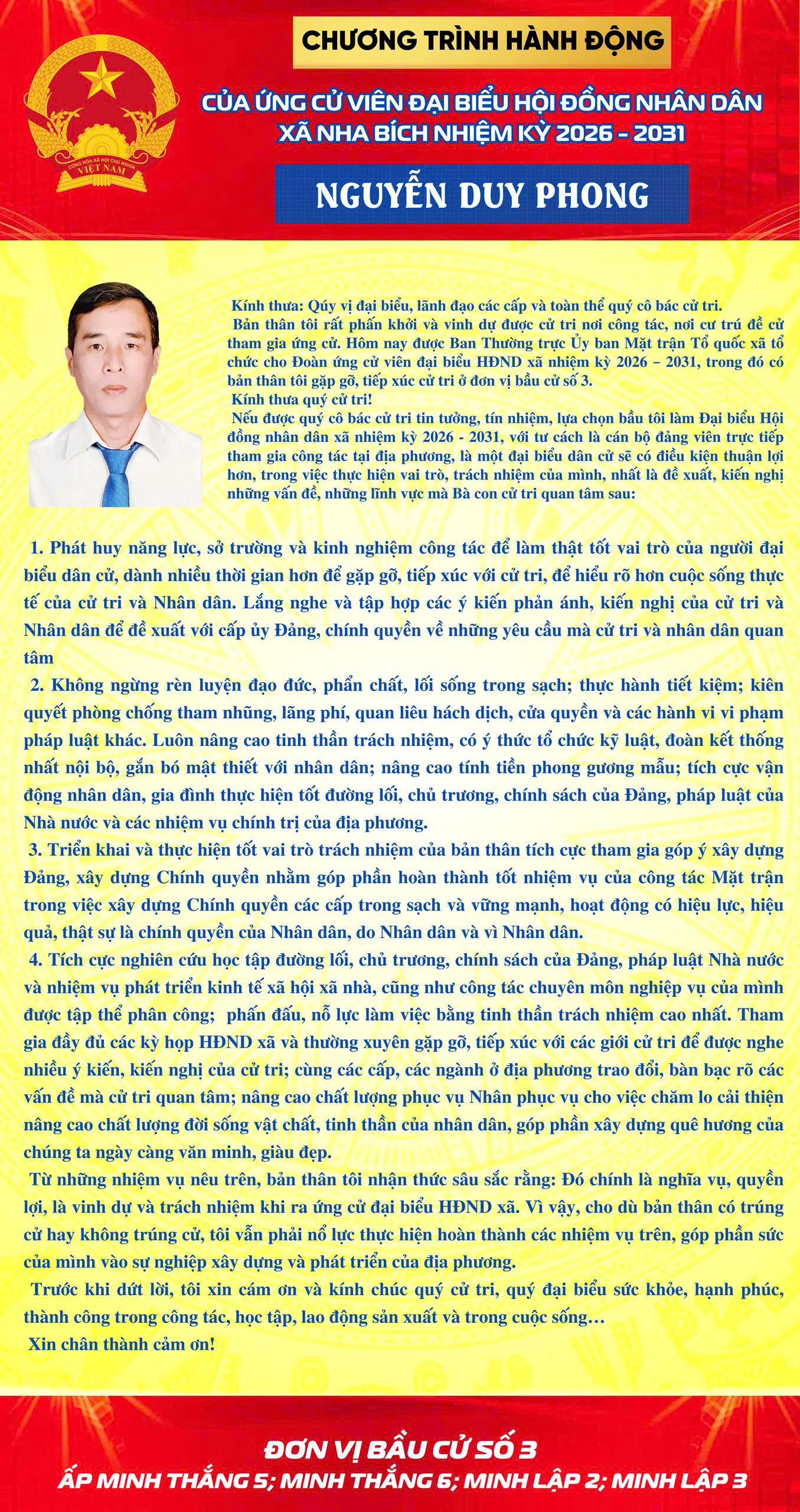 <h1>CHƯƠNG TRÌNH HÀNH ĐỘNG CỦA CÁC ỨNG CỬ VIÊN KHU VỰC BẦU CỬ SỐ 3</h1>