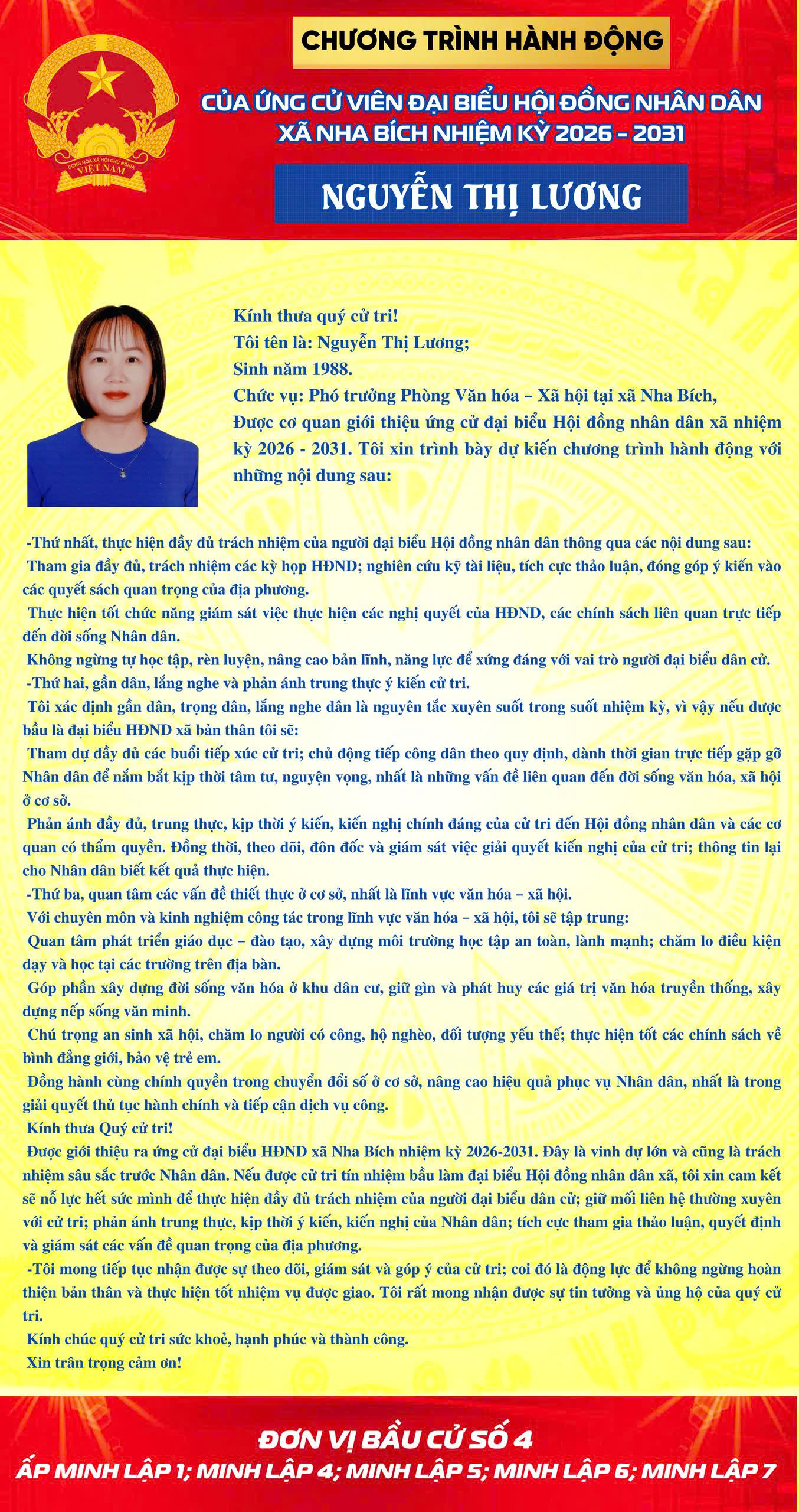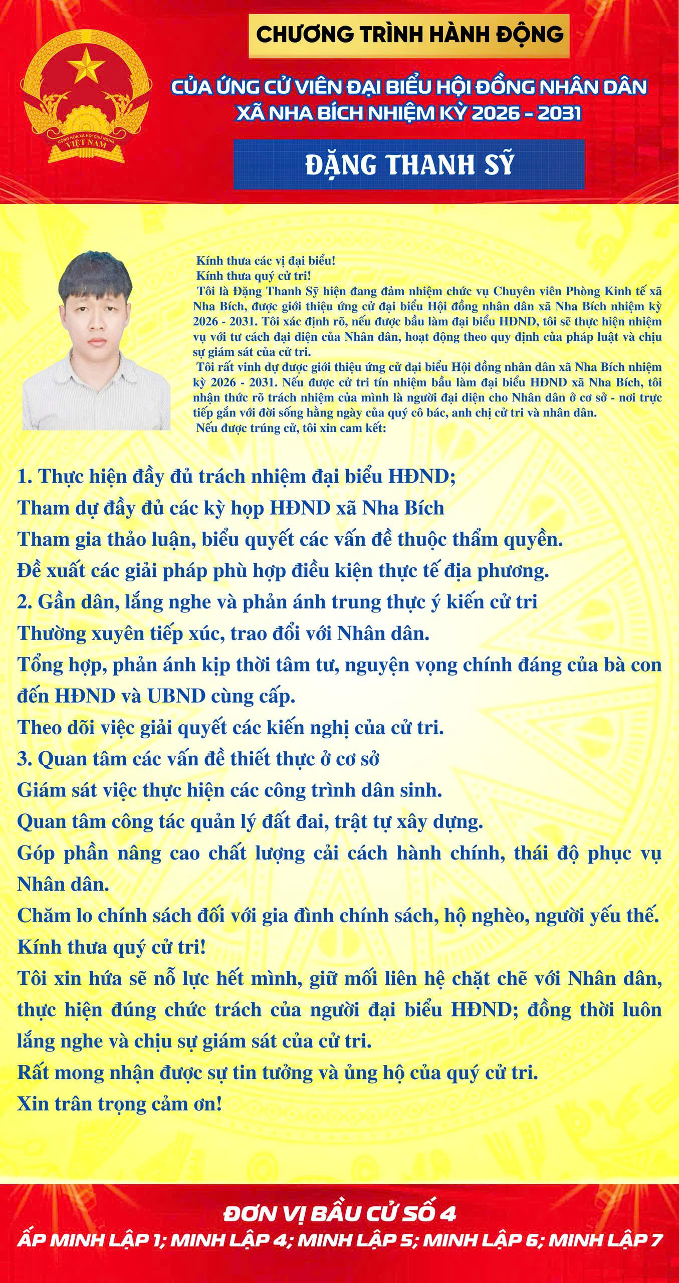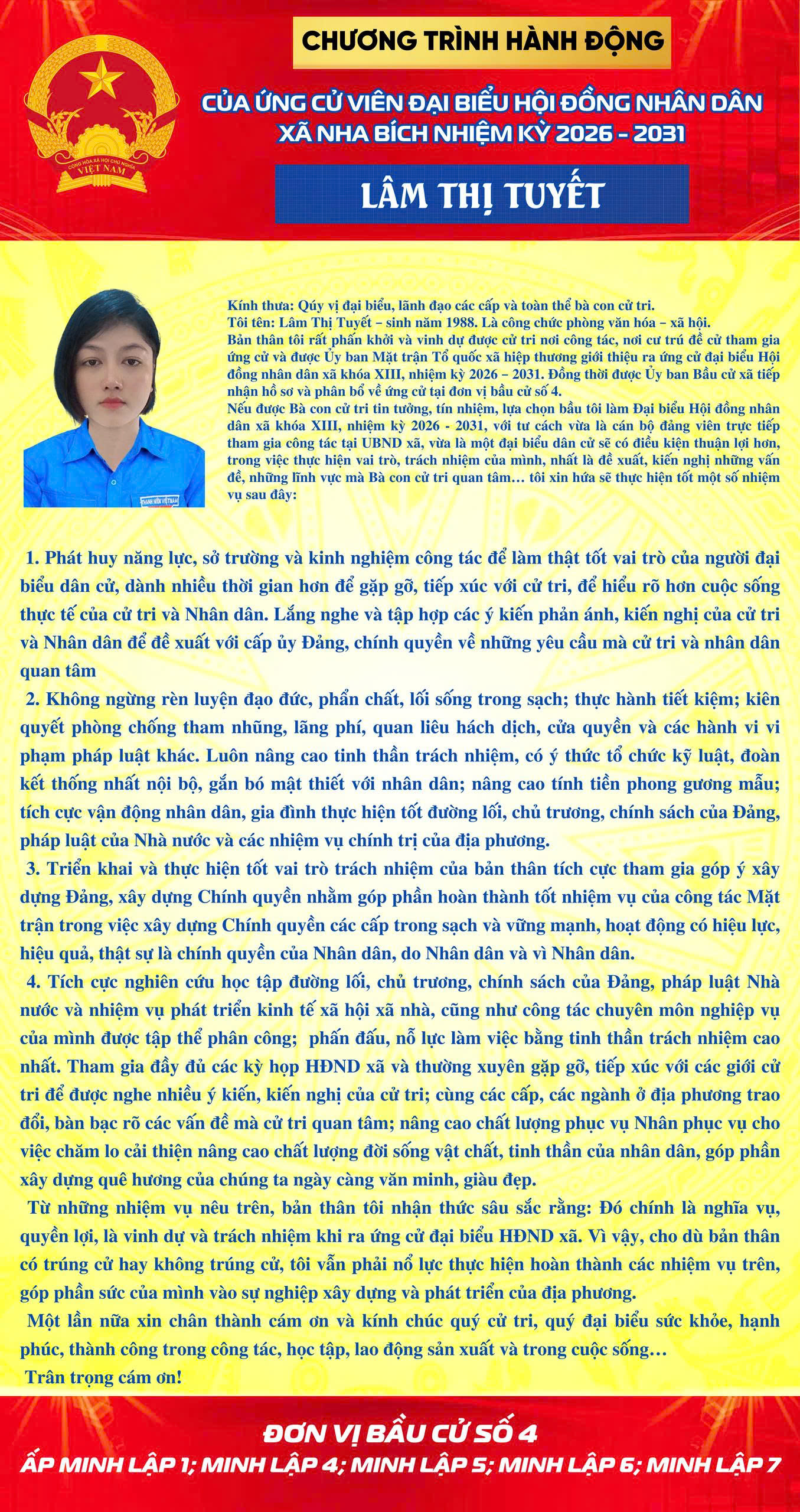 <h1>CHƯƠNG TRÌNH HÀNH ĐỘNG CỦA CÁC ỨNG CỬ VIÊN TẠI ĐƠN VỊ BẦU CỬ SỐ 4</h1>