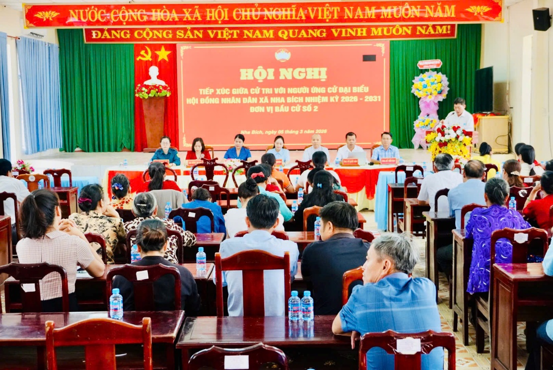 <meta property="og:title" content="Hội nghị tiếp xúc giữa cử tri với người ứng cử đại biểu HĐND xã Nha Bích nhiệm kỳ 2026 – 2031, thuộc đơn vị bầu cử số 2">