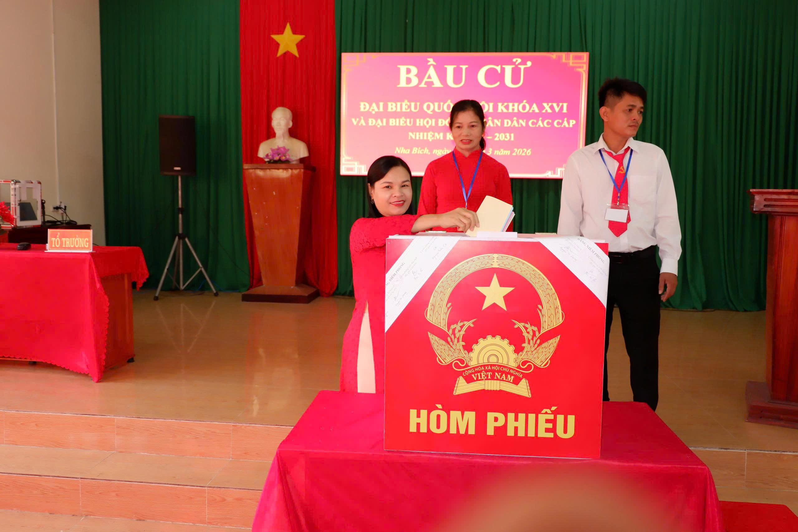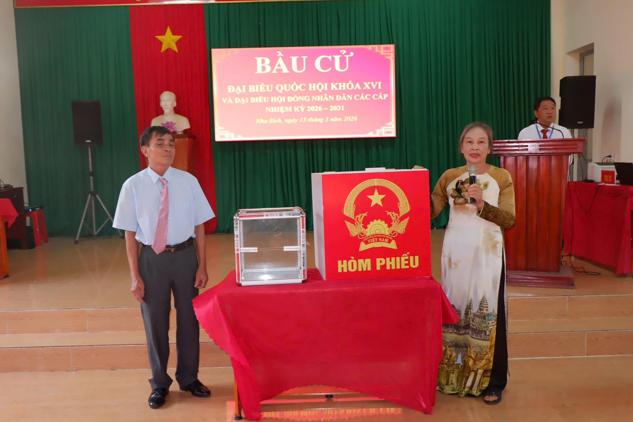 <p style="text-align:justify;">Sáng ngày 15/3/2026, tại khu vực bỏ phiếu số 11, đơn vị bầu cử số 2, ấp Minh Thắng 4 xã Nha Bích đã long trọng tổ chức lễ khai mạc cuộc bầu cử đại biểu Quốc hội và đại biểu HĐND các cấp nhiệm kỳ 2026 – 2031.</p><figure class="image"><img style="aspect-ratio:2560/1707;" src="https://nhabich.dongnai.gov.vn/uploads/nhabich/news/2026_03/image_159.png" width="2560" height="1707" /></figure><p style="text-align:justify;">&nbsp;<i>Lễ chào cờ tại khu vực bỏ phiếu số 11, đơn vị bầu cử số 2, ấp Minh Thắng 4 xã Nha Bích. Ảnh Tiến Công &nbsp;</i><br />Đến dự lễ khai mạc có bà&nbsp;<strong>Nguyễn Thị Hải Vân</strong>, Phó Bí thư Thường trực Đảng ủy, Chủ tịch HĐND xã, Phó Trưởng Ban Thường trực Ban Chỉ đạo công tác bầu cử xã Nha Bích.Trong không khí trang nghiêm, đúng quy định của pháp luật về bầu cử. Tổ bầu cử đã tiến hành nghi thức chào cờ, tuyên bố lý do, giới thiệu đại biểu và thông qua nội quy, quy định của khu vực bỏ phiếu. Công tác chuẩn bị cơ sở vật chất, danh sách cử tri, thùng phiếu, phiếu bầu và các điều kiện phục vụ cho ngày bầu cử được chuẩn bị chu đáo, đảm bảo đúng quy định.</p><figure class="image"><img style="aspect-ratio:2560/1707;" src="https://nhabich.dongnai.gov.vn/uploads/nhabich/news/2026_03/image_160.png" width="2560" height="1707" /></figure><p style="text-align:justify;"><i>Bà&nbsp;<strong>Nguyễn Thị Hải Vân</strong>, Phó Bí thư Thường trực Đảng ủy, Chủ tịch HĐND xã, Phó Trưởng Ban Thường trực Ban Chỉ đạo công tác bầu cử xã Nha Bích tại buổi lễ. Ảnh Tiến Công&nbsp;</i></p><p style="text-align:justify;">Ngay sau lễ khai mạc. Tổ bầu cử đã mời cử tri đại diện lên kiểm tra thùng phiếu và tiến hành dán niêm yết thùng phiếu.&nbsp;</p><figure class="image"><img style="aspect-ratio:2560/1707;" src="https://nhabich.dongnai.gov.vn/uploads/nhabich/news/2026_03/image_161.png" width="2560" height="1707" /></figure><p style="text-align:center;"><i>Đại diện cử tri kiểm tra , niêm yết thùng phiếu. Ảnh Tiến Công.</i></p><p style="text-align:justify;">Ngay sau lễ khai mạc, đông đảo cử tri đã&nbsp; lần lượt tham gia bỏ phiếu, thực hiện quyền và nghĩa vụ công dân của mình, lựa chọn những đại biểu tiêu biểu, đủ đức, đủ tài đại diện cho ý chí, nguyện vọng của nhân dân tham gia Quốc hội và HĐND các cấp nhiệm kỳ 2026 – 2031. Tại khu vực bỏ phiếu số 11, đơn vị bầu cử số 2, ấp Minh Thắng 4 xã Nha Bích diễn ra trong không khí dân chủ, nghiêm túc, an toàn và đúng quy định của pháp luật.</p><figure class="image"><img style="aspect-ratio:2560/1707;" src="https://nhabich.dongnai.gov.vn/uploads/nhabich/news/2026_03/image_162.png" width="2560" height="1707" /></figure><p style="text-align:justify;">&nbsp;&nbsp;&nbsp;&nbsp;&nbsp;&nbsp;&nbsp;&nbsp;&nbsp;&nbsp;&nbsp;&nbsp;&nbsp; <i>Thành Viên tổ bầu cử kiểm tra danh sách cử tri . Ảnh Tiến công</i></p><figure class="image"><img style="aspect-ratio:2560/1707;" src="https://nhabich.dongnai.gov.vn/uploads/nhabich/news/2026_03/image_163.png" width="2560" height="1707" /></figure><p style="text-align:center;"><i>Cử tri nhận phiều bầu cử . Ảnh Tiến Công&nbsp;</i></p><figure class="image"><img style="aspect-ratio:2560/1707;" src="https://nhabich.dongnai.gov.vn/uploads/nhabich/news/2026_03/image_164.png" width="2560" height="1707" /></figure><p style="text-align:center;"><i>Cử tri bỏ phiếu vào thùng phiếu. Ảnh Tiến Công&nbsp;</i></p><p style="text-align:justify;">Được biết, tại đơn vị bỏ phiếu số 11 đơn vị bầu cử số 2 có 479 cử tri.&nbsp; Số người ứng cử Đại biểu Quốc Hội là 5 người và số đại biểu được bầu là 3 đại biểu. Số người ứng cử Đại biểu HĐND tỉnh là 5 người và số đại biểu được bầu là 3 đại biểu. Số người ứng cử Đại biểu HĐND xã Nha Bích là 8 người &nbsp;và số đại biểu được bầu là 5 đại biểu.</p><p>&nbsp;</p><p>&nbsp;</p><p>&nbsp;</p><p>&nbsp;</p>