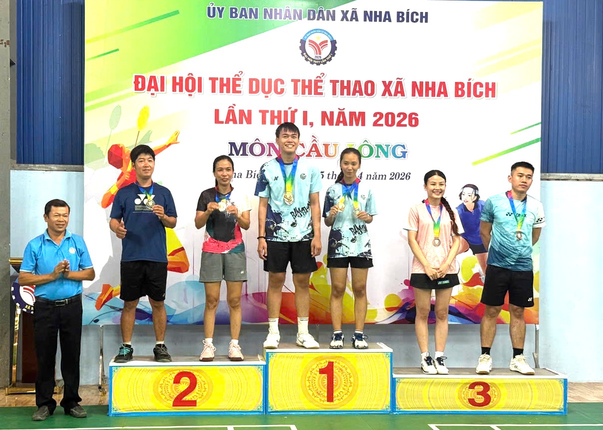 <p style="text-align:justify;">Trong khuôn khổ Đại hội Thể dục Thể thao xã Nha Bích lần thứ I năm 2026, bộ môn cầu lông đã diễn ra sôi nổi, thu hút sự tham gia của 87 vận động viên đến từ 17 đơn vị là các ấp và trường học trên địa bàn xã. Các vận động viên tranh tài ở 5 nội dung gồm: Đôi nam, Đôi nữ, Đơn nam, Đơn nữ và Đôi nam - nữ.</p><p style="text-align:justify;">Sau nhiều ngày thi đấu hào hứng, đoàn kết và trung thực, giải đã khép lại thành công tốt đẹp với nhiều trận đấu hấp dẫn, cống hiến cho khán giả những pha cầu đẹp mắt.</p><figure class="table"><table><tbody><tr><td>&nbsp;</td><td>&nbsp;</td></tr><tr><td>&nbsp;</td><td><img src="https://nhabich.dongnai.gov.vn/uploads/nhabich/news/2026_04/image_1.jpeg" width="605" height="246" /></td></tr></tbody></table></figure><p style="text-align:center;"><i>Các vận động viên thi đấu nội dung đôi nam nữ. Ảnh Bá Lợi</i></p><figure class="table"><table><tbody><tr><td>&nbsp;</td><td>&nbsp;</td></tr><tr><td>&nbsp;</td><td><img src="https://nhabich.dongnai.gov.vn/uploads/nhabich/news/2026_04/image_3.jpeg" width="605" height="340" /></td></tr></tbody></table></figure><p style="text-align:center;"><i>Các vận động viên thi đấu nội dung đôi nữ. Ảnh Bá Lợi</i></p><p style="text-align:justify;"><strong>Kết quả cụ thể như sau:</strong></p><p style="text-align:justify;"><i>Đôi nam:</i></p><ul style="list-style-type:disc;"><li><p style="text-align:justify;">Giải Nhất: Phạm Thế Quang - Nguyễn Huỳnh Gia Bảo&nbsp;</p></li><li><p style="text-align:justify;">Giải Nhì: Đặng Văn Võ - Đinh Quang Vinh&nbsp;</p></li><li><p style="text-align:justify;">Giải Ba: Thiệu Quang Long - Hồ Thanh Nam&nbsp;</p></li></ul><p style="text-align:justify;"><i>Đôi nữ:</i></p><ul style="list-style-type:disc;"><li><p style="text-align:justify;">Giải Nhất: Thiệu Thị Thùy Dương - Nguyễn Thị Thùy Trang&nbsp;</p></li><li><p style="text-align:justify;">Giải Nhì: Cao Thuyền Minh Thảo - Đinh Thị Yến Vy&nbsp;</p></li><li><p style="text-align:justify;">Ba: Nguyễn Hoàng Bảo Hân - Cao Lê Hoàng Ngân</p></li><li><p style="text-align:justify;"><img src="https://nhabich.dongnai.gov.vn/uploads/nhabich/news/2026_04/image_4.jpeg" width="605" height="442" />Giải &nbsp;</p></li></ul><p style="margin-left:18.0pt;text-align:center;"><i>Ông Võ Quốc Hân -&nbsp;Giám đốc TTDVTH trao giải nội dung cầu lông đôi nữ . Ảnh Tiến Công&nbsp;</i></p><p style="text-align:justify;"><i>Đơn nữ:</i></p><ul style="list-style-type:disc;"><li><p style="text-align:justify;">Giải Nhất: Thiệu Thị Thùy Dương&nbsp;</p></li><li><p style="text-align:justify;">Giải Nhì: Đinh Thị Yến Vy&nbsp;</p></li><li><p style="text-align:justify;">Giải Ba: Đào Thị Hường&nbsp;</p></li></ul><p style="text-align:justify;"><i>Đơn nam:</i></p><ul style="list-style-type:disc;"><li><p style="text-align:justify;">Giải Nhất: Nguyễn Duy Phương&nbsp;</p></li><li><p style="text-align:justify;">Giải Nhì: Nguyễn Hoàng Gia Bảo&nbsp;</p></li><li><p style="text-align:justify;">Giải Ba: Đặng Đình Hữu Thắng&nbsp;</p></li></ul><p style="text-align:justify;"><i>Đôi nam - nữ:</i></p><ul style="list-style-type:disc;"><li><p style="text-align:justify;">Giải Nhất: Đặng Văn Võ - Cao Thuyền Minh Thảo&nbsp;</p></li><li><p style="text-align:justify;">Giải Nhì: Hồ Thanh Nam - Nguyễn Thị Thùy Trang&nbsp;</p></li><li><p style="text-align:justify;">Giải Ba: Phan Thị Thanh Thương - Bùi Ngọc Sơn&nbsp;</p></li><li><figure class="table"><table><tbody><tr><td>&nbsp;</td><td>&nbsp;</td></tr><tr><td>&nbsp;</td><td><img src="https://nhabich.dongnai.gov.vn/uploads/nhabich/news/2026_04/image_2.jpeg" width="605" height="431" /></td></tr></tbody></table></figure></li></ul><p style="text-align:center;"><i>Ông Võ Quốc Hân&nbsp;- Giám đốc TTDVTH trao giải nội dung cầu lông đôi nam nữ. Ảnh Tiến Công</i></p><p style="text-align:justify;">Ông Võ Quốc Hân – Giám đốc Trung tâm DVTH – Phó Ban Thường trực Ban Tổ chức Đại hội TDTT xã Nha Bích lần thứ I, năm 2026 cho biết: Giải cầu lông là một trong những nội dung nổi bật của Đại hội, góp phần thúc đẩy phong trào rèn luyện thể dục thể thao, nâng cao sức khỏe trong nhân dân, đồng thời tăng cường tinh thần đoàn kết, giao lưu giữa các đơn vị trên địa bàn xã Nha Bích.</p><p style="text-align:justify;">&nbsp;&nbsp;&nbsp;&nbsp;&nbsp;&nbsp;&nbsp;&nbsp;&nbsp;&nbsp;&nbsp;&nbsp;&nbsp;&nbsp;&nbsp;&nbsp;&nbsp;&nbsp;&nbsp;&nbsp;&nbsp;&nbsp;&nbsp;&nbsp;&nbsp;&nbsp;&nbsp;&nbsp;&nbsp;&nbsp; &nbsp;&nbsp;&nbsp;&nbsp;&nbsp;&nbsp;&nbsp;&nbsp;&nbsp;&nbsp;&nbsp;&nbsp;&nbsp;&nbsp;&nbsp;&nbsp;&nbsp;&nbsp;&nbsp;&nbsp;&nbsp;&nbsp;&nbsp;&nbsp;&nbsp;&nbsp;&nbsp;&nbsp;&nbsp;&nbsp;&nbsp;&nbsp;&nbsp;&nbsp;&nbsp;&nbsp;&nbsp;&nbsp;&nbsp;&nbsp;&nbsp;&nbsp;&nbsp;&nbsp;&nbsp;&nbsp;&nbsp;&nbsp;&nbsp;&nbsp; &nbsp;</p>