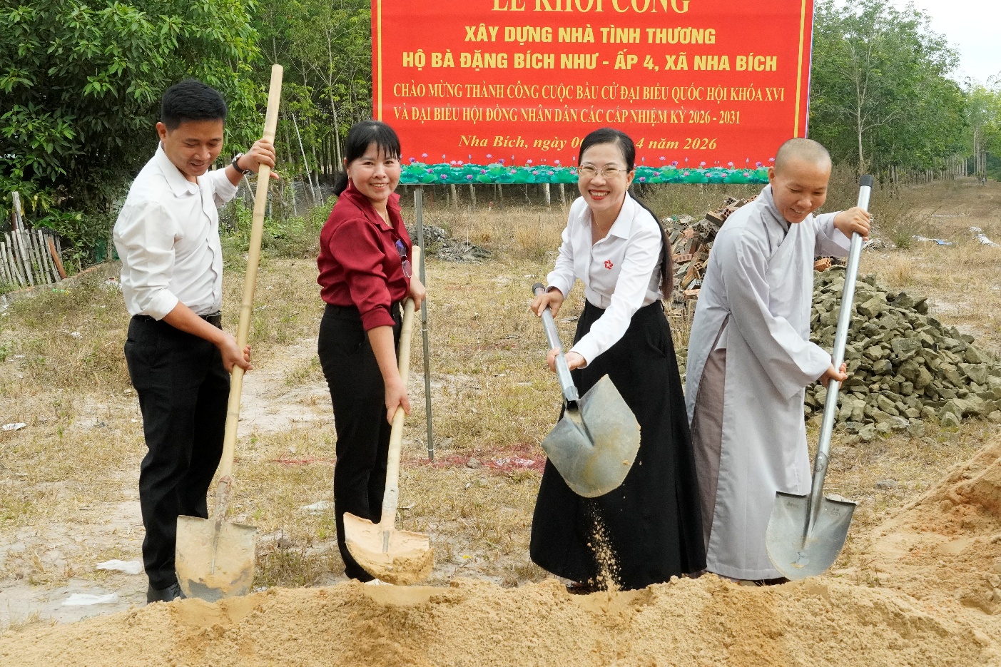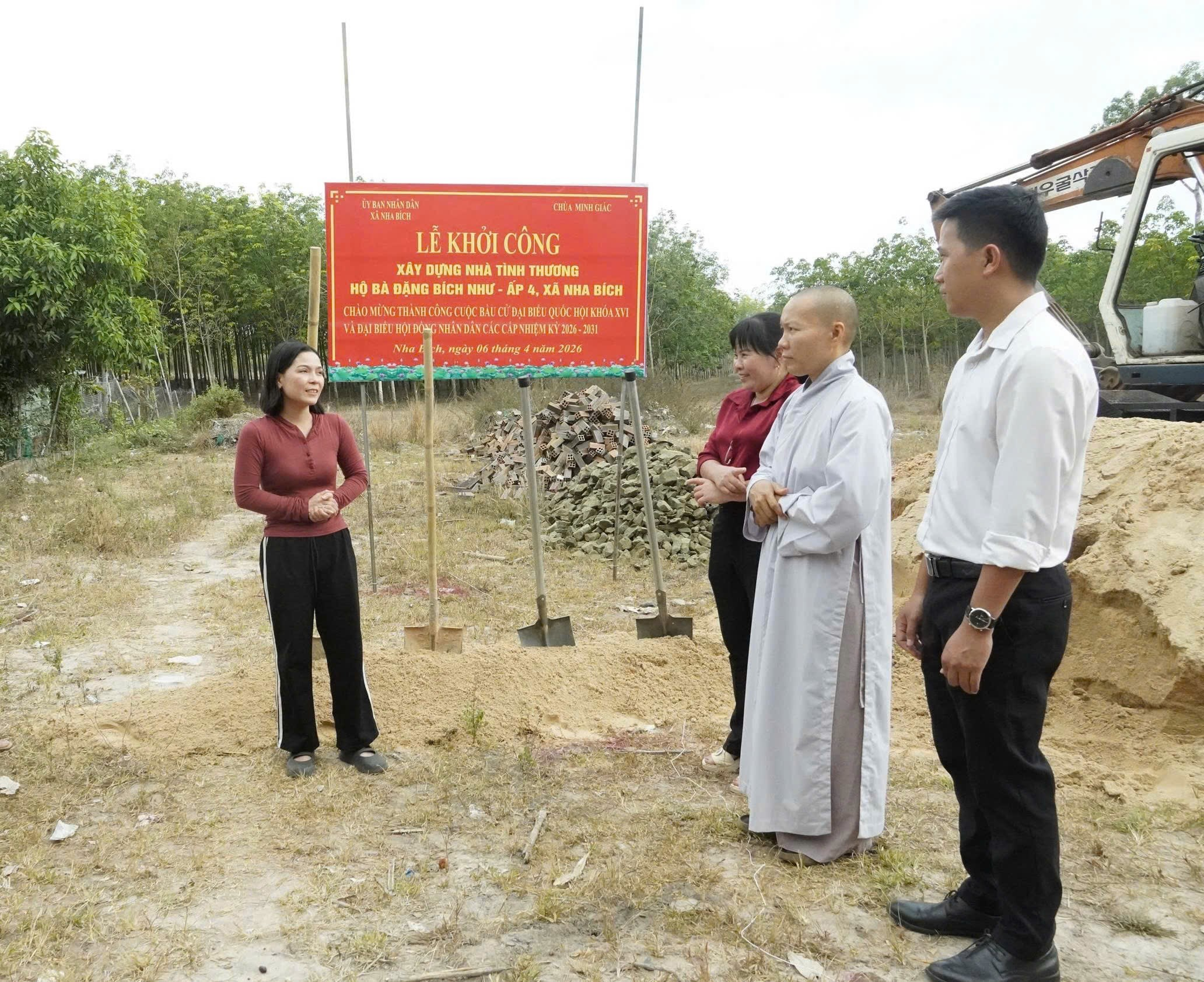 Phát biểu tại buổi lễ, bà Nguyễn Thị Minh Tiền – Phó Chủ tịch UBND xã Nha Bích nhấn mạnh: việc xây dựng nhà tình thương là hoạt động ý nghĩa, thể hiện tinh thần tương thân tương ái của cộng đồng. Phó Chủ tịch UBND xã Nha Bích mong muốn sau khi căn nhà hoàn thành, gia đình bà Đặng Bích Như sẽ có điều kiện ổn định cuộc sống, nỗ lực vươn lên thoát nghèo, đồng thời gửi lời cảm ơn đến các mạnh thường quân đã chung tay hỗ trợ địa phương trong công tác an sinh xã hội.