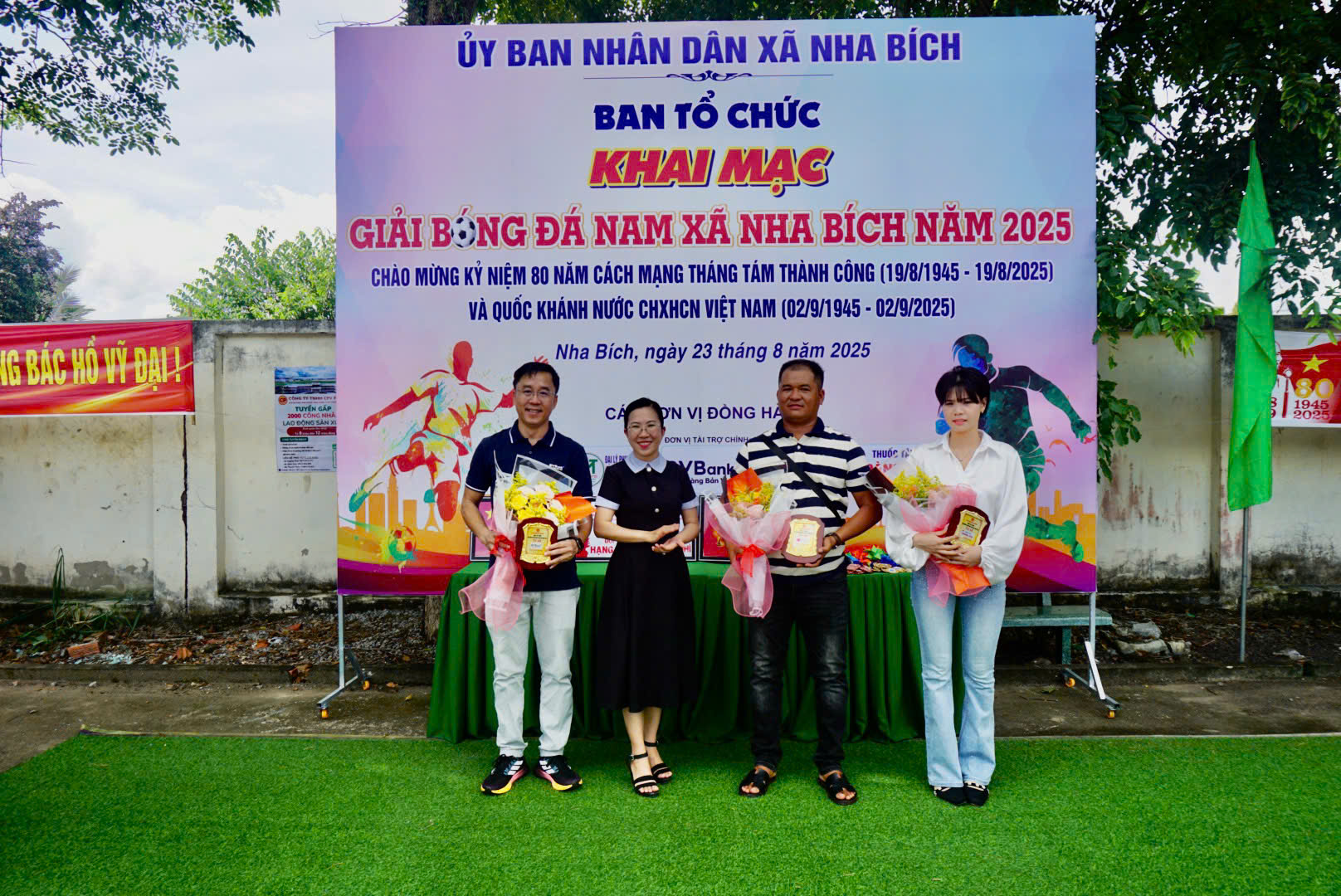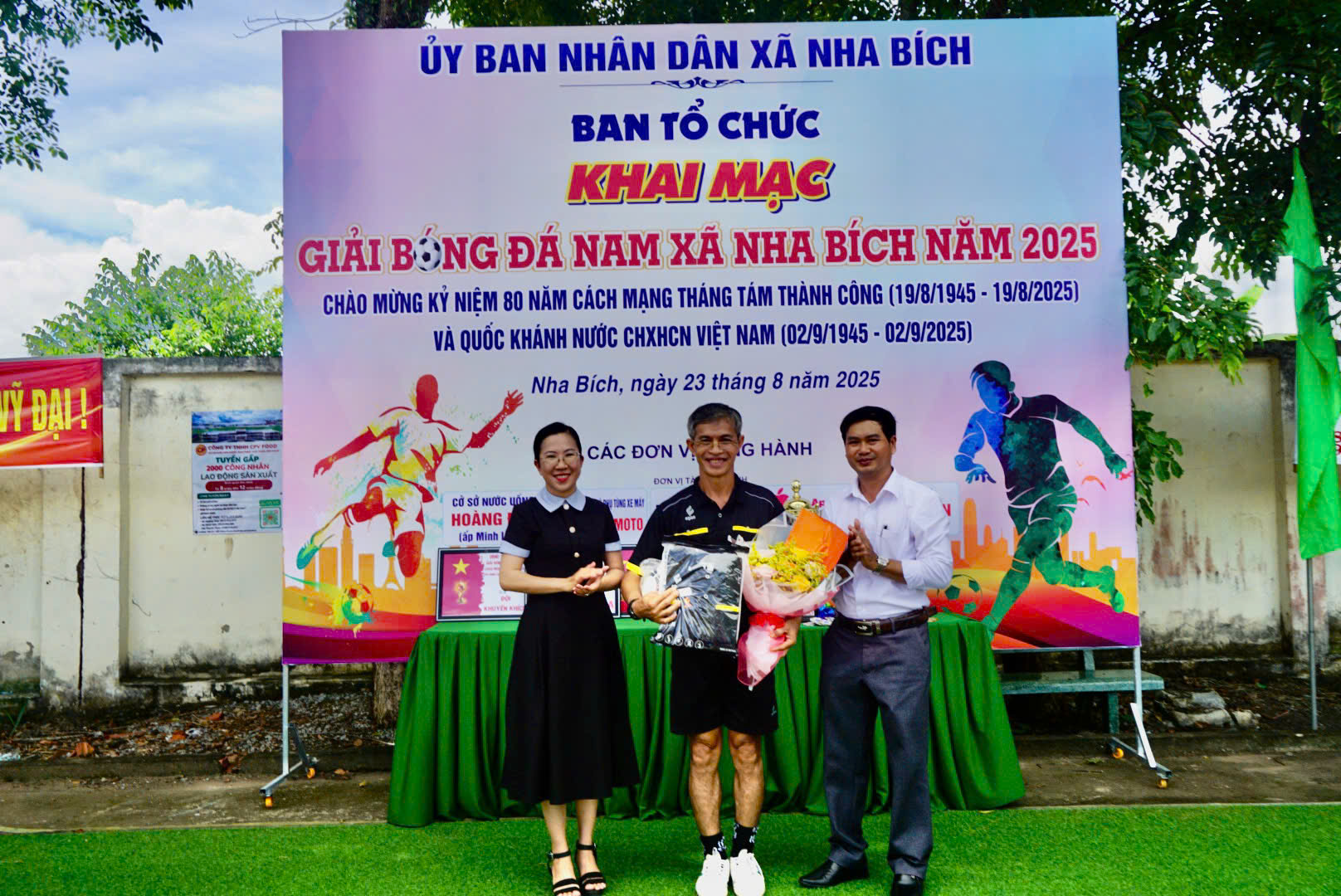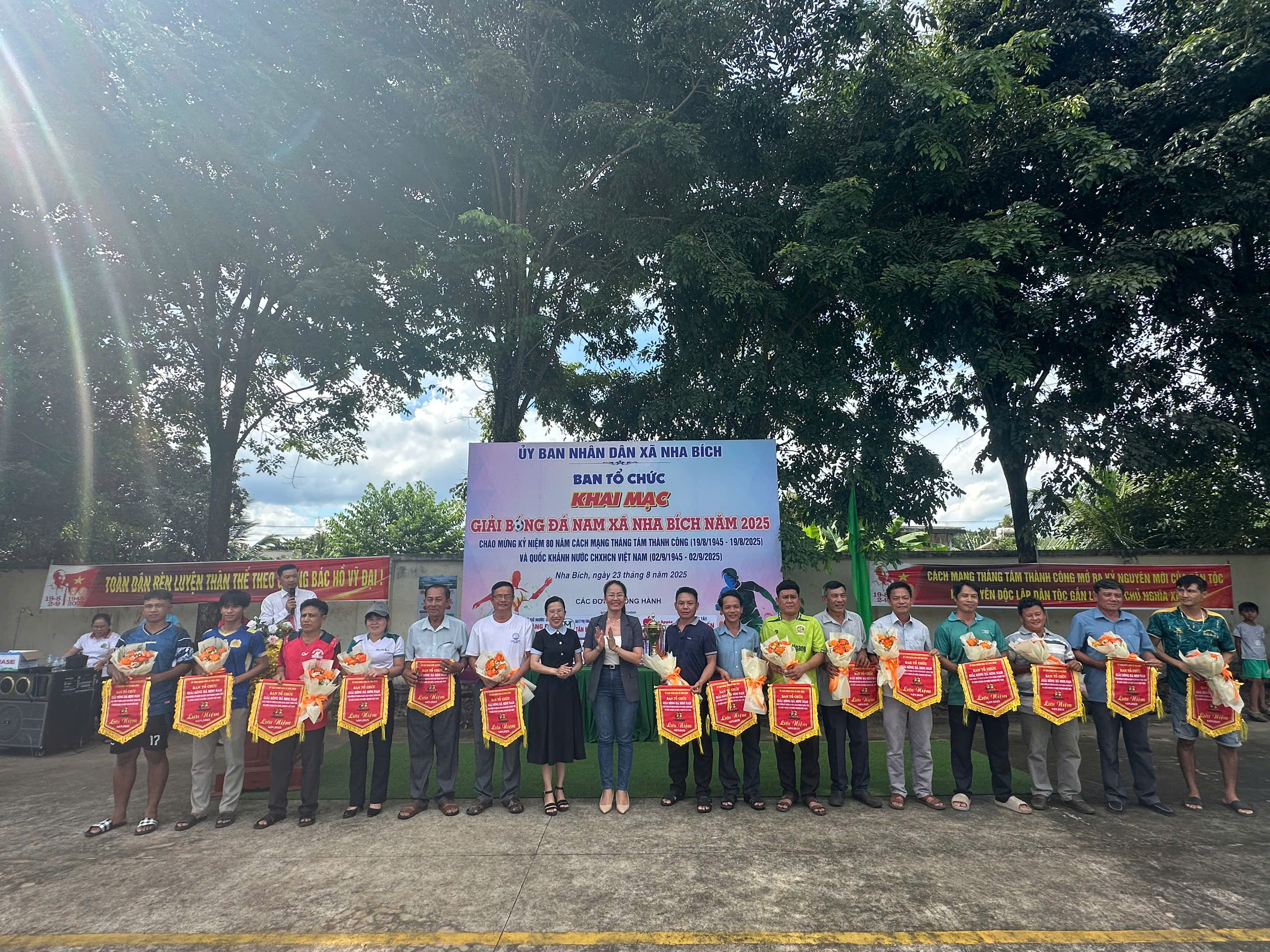 Chiều 23/8/2025, UBND xã Nha Bích tổ chức khai mạc Giải bóng đá mini Nam xã Nha Bích năm 2025 với sự tham gia của 14 đội bóng đến từ các ấp trên địa bàn xã. Đây là hoạt động thiết thực chào mừng kỷ niệm 80 năm Cách mạng Tháng tám thành công (19/8/1945 – 19/8/2025) và Quốc khánh Nước CHXHCN Việt Nam (02/9/1945 – 02/9/2025). Dự có bà Nguyễn Thị Minh Tiền – UV. BTV Đảng ủy, Phó chủ tịch UBND xã, Trưởng Ban Tổ chức giải; bà Phạm Thị Yến Linh - UV. BTV, Trưởng Ban Xây dựng Đảng; Lãnh đạo các cơ quan, ban, ngành xã; các đồng chí Bí thư Chi bộ, Trưởng các ấp; đại diện các đơn vị tài trợ cùng đông đảo cổ động viên và quần chúng nhân dân trên địa bàn xã Nha Bích.