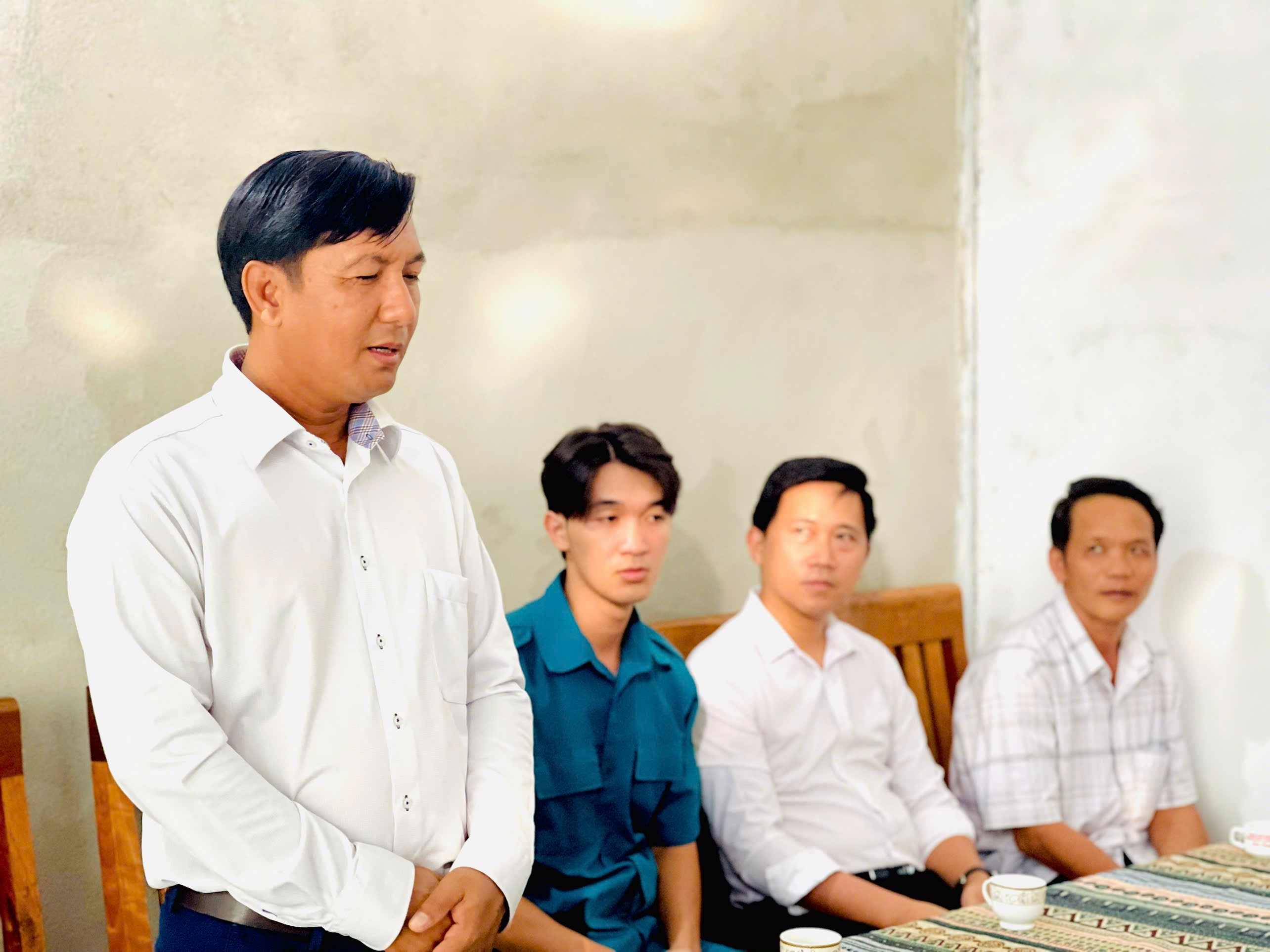 Mục sư Điểu Lương bày tỏ tình cảm trước sự quan tâm của lãnh đạo Đảng, chính quyền, MTTQ địa phương đã đến thăm, tặng quà nhân dịp Giáng sinh năm 2025. Ảnh: Huyền Trang