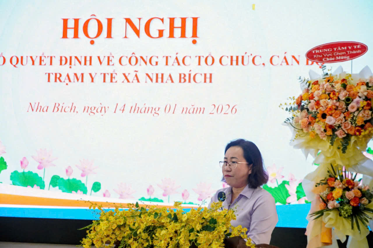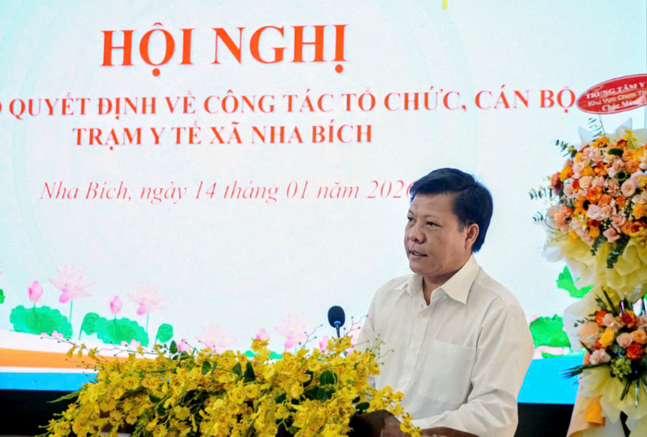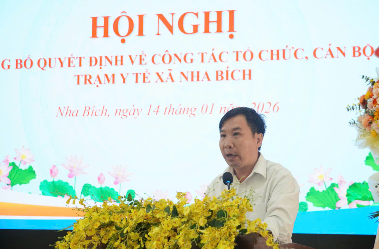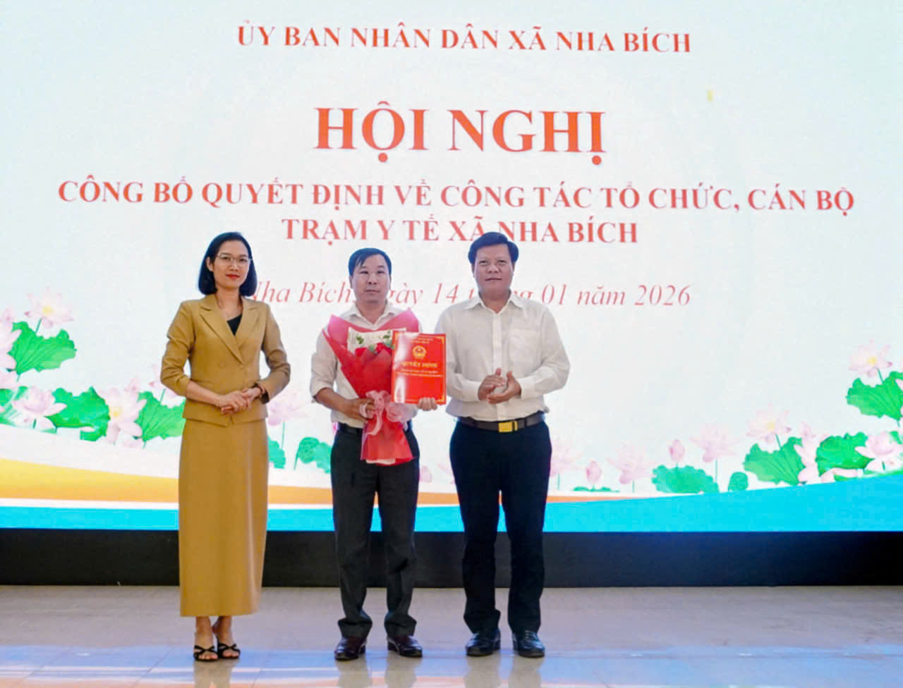 Sáng ngày 14/01/2026, UBND xã Nha Bích long trọng tổ chức Hội nghị công bố các Quyết định về công tác tổ chức, nhân sự trạm y tế xã